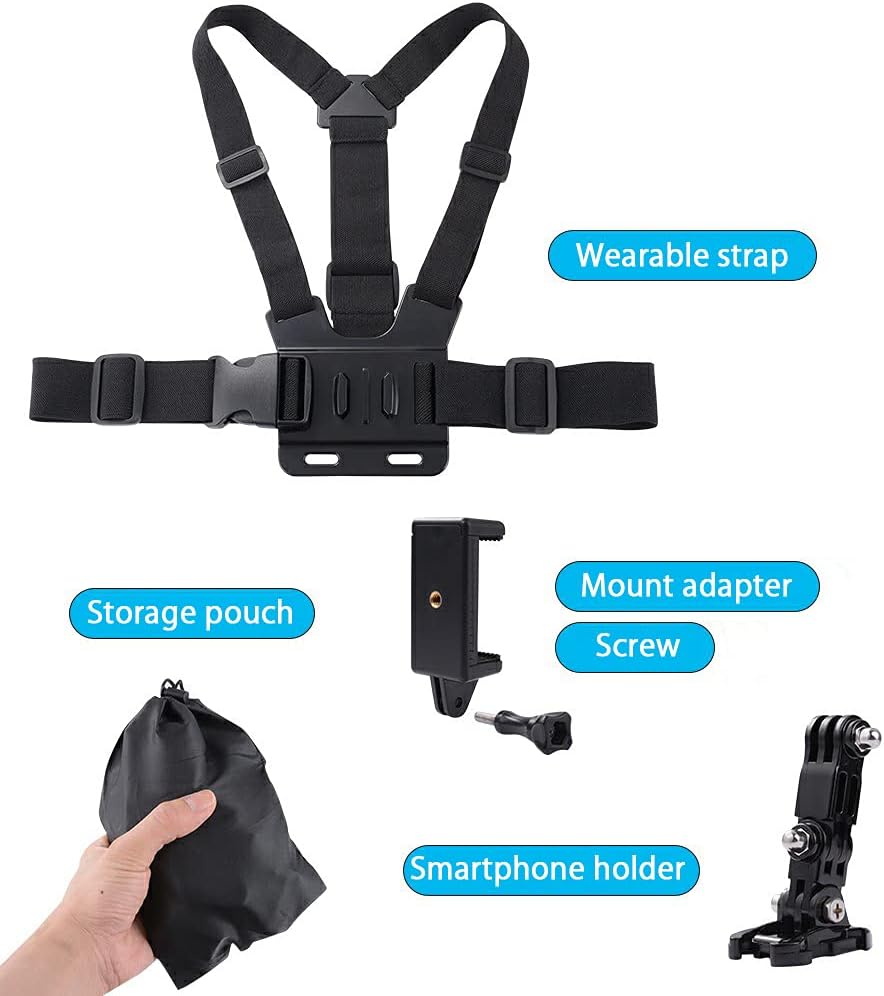 The chest mount harness is not only suitable for smartphones with a width of 5.6 to 8.8 cm,but also for all GoPro.For example,iPhone XS,XS Max,iPhone 8,Samsung Galaxy S6,Huawei and sports cameras.Such as GoPro Hero5/4/4 session,LEVIN, MUSON,DJI Osmo Action,SJCAM,DBPOWER,etc.