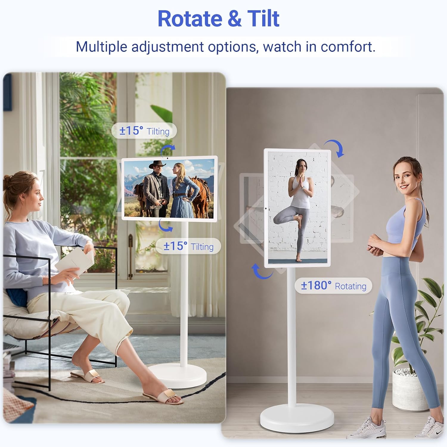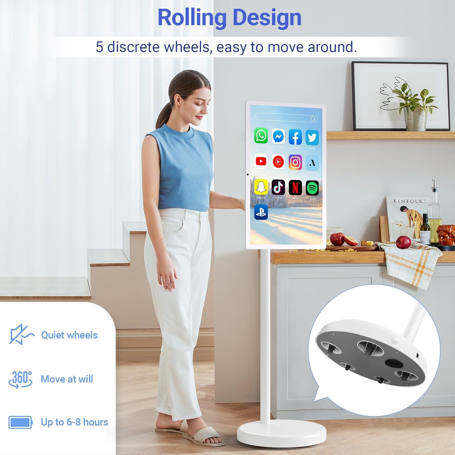 22-Inch Portable TV on Wheels, 1080p Portable Touch Screen Monitor, Smart Rolling TV Built-in 13MP Camera, Built-in Battery | Android 13 | 6+128G