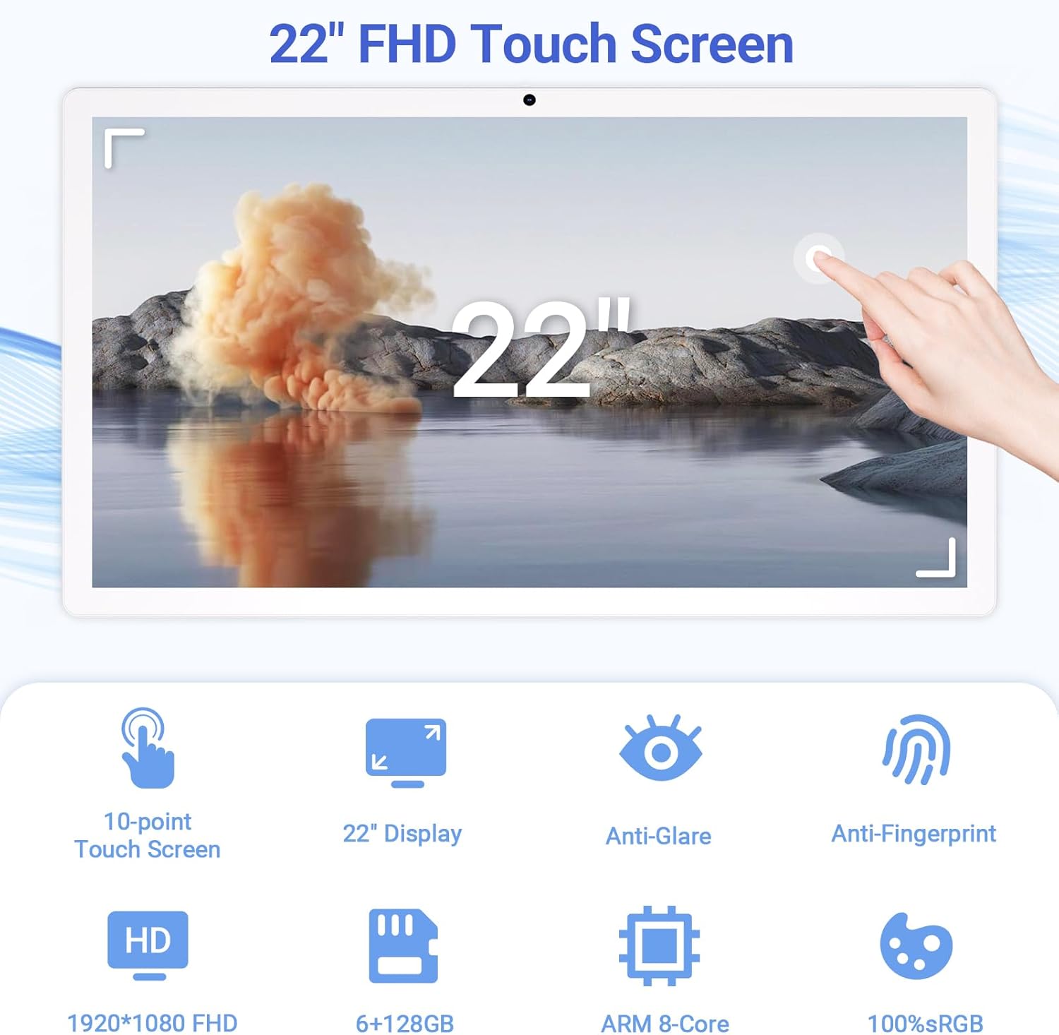 Rotatable FHD Touch Screen TV Monitor: The 22-Inch in-cell 10 points touch screen has a resolution of 1920×1080 pixels, bringing a high-definition visual experience. Freely switch between horizontal and vertical screen, and can be adjusted to different angles by rotating and tilting as needed. Built-in 13MP camera for taking photos and videos, and can also play motion-sensing games.