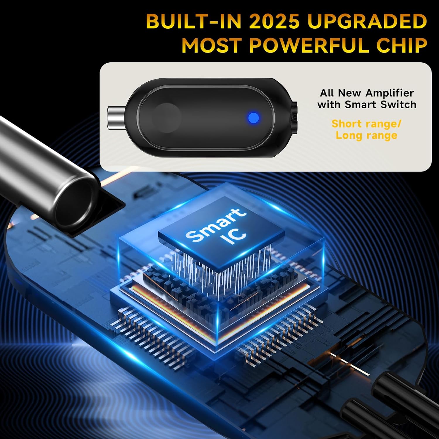 2800+ MILES LONG RANGE RECEPTION: 2025 upgraded antenna for smart tv equipped with newest amplifier signal booster, which built in advanced smart IC chip, not only can receive signals up to 2800+ miles, but also optimize the signal transmission protection against interference with other signals, and make sure you can get more free local channels even you are far away broadcast towers (including urban city, rural area and etc.).