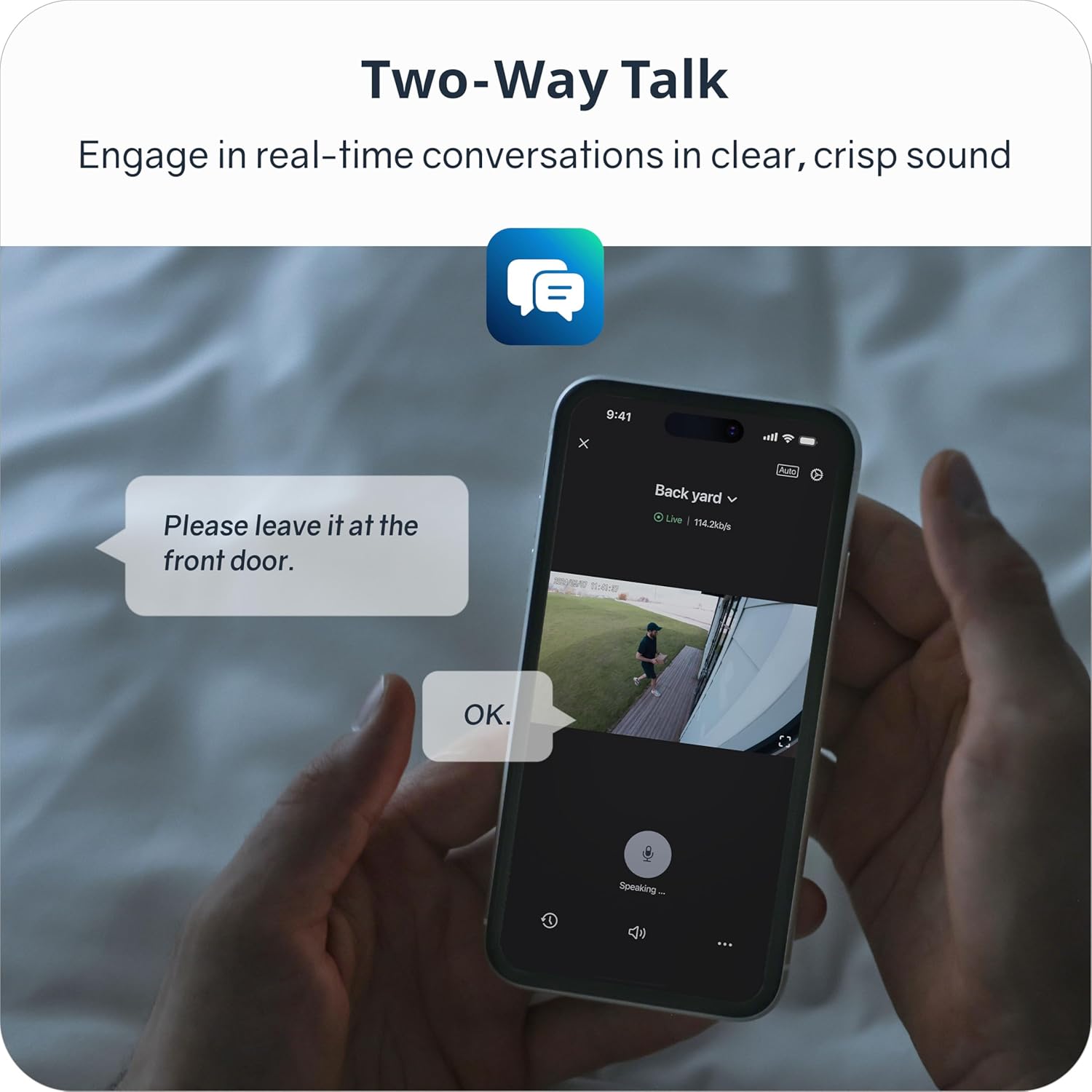4K Ultra HD & Full-Color Night Vision: Experience crystal-clear video quality with 4K (3840×2160) and 8× zoom, capturing faces and license plates with precision, day or night. The f/1.6 lens and 140° wide-angle view help reduce blind spots, while advanced full-color night vision (up to 40ft) reveals potential threats in vivid detail—not just grainy shadows. The motion-activated spotlight enhances visibility, deters intruders, which further secures your home