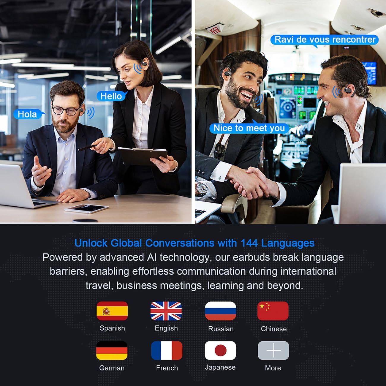 Unlock Global Conversations with 144 Languages: Our translator earbuds support an impressive 144 languages (74 languages, 70 accents), including Spanish, Chinese, English, Japanese, German, French, and many more. To activate real-time translation, simply download the app (compatible with Android and iOS devices). Powered by advanced AI technology, our AI translation earbuds break language barriers, enabling effortless communication during international travel, business meetings, and beyond.