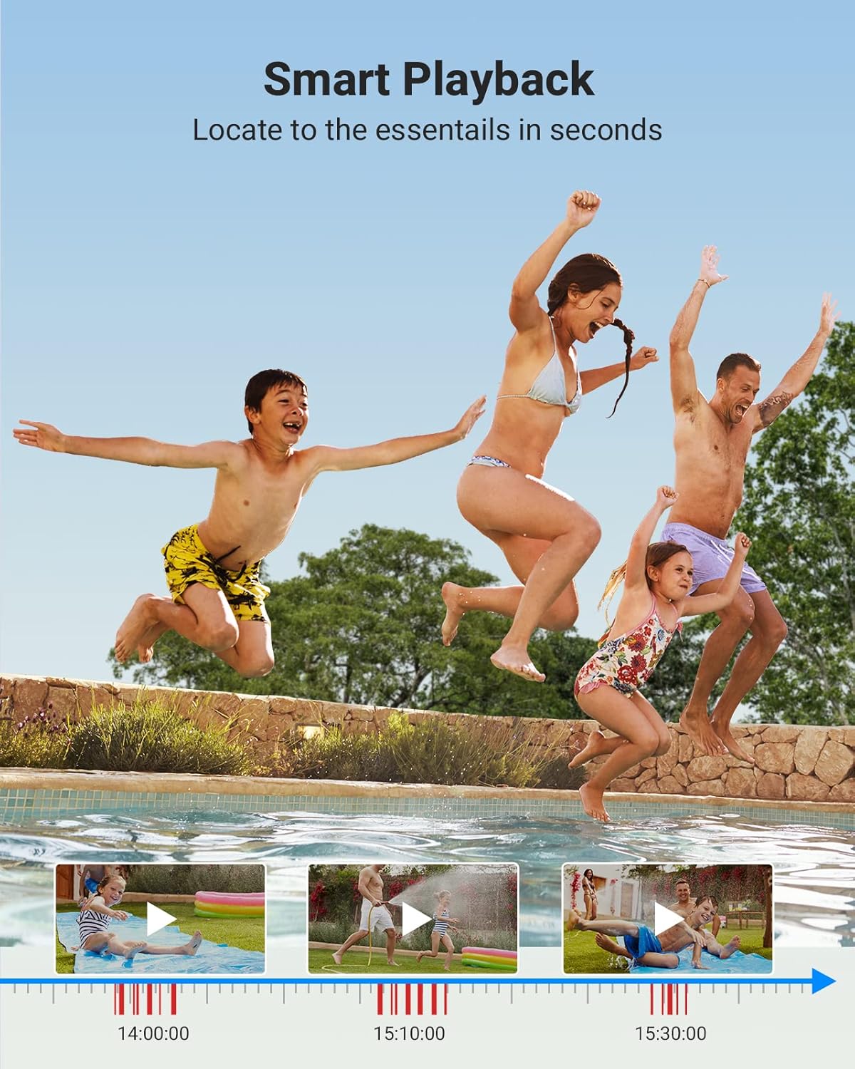 Up to 10TB HDD&H.265+ Coding: The home security system supports up to 10TB HDD (Comes with 2TB HDD), which is made for high workload needs of surveillance monitoring. The H.265+ video compression tech saves up to 80% of storage space than H.264 one