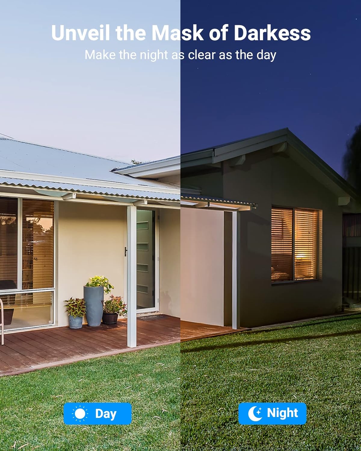 3K Cam & Built-in Mic: With 3K CMOS image sensor, the security camera brings 16:9 aspect ratio of 2960×1665@20fps HD quality and provides clearer live stream clarity. Built-in Mic is also for audio recording. Audio can also be turned off in the menu