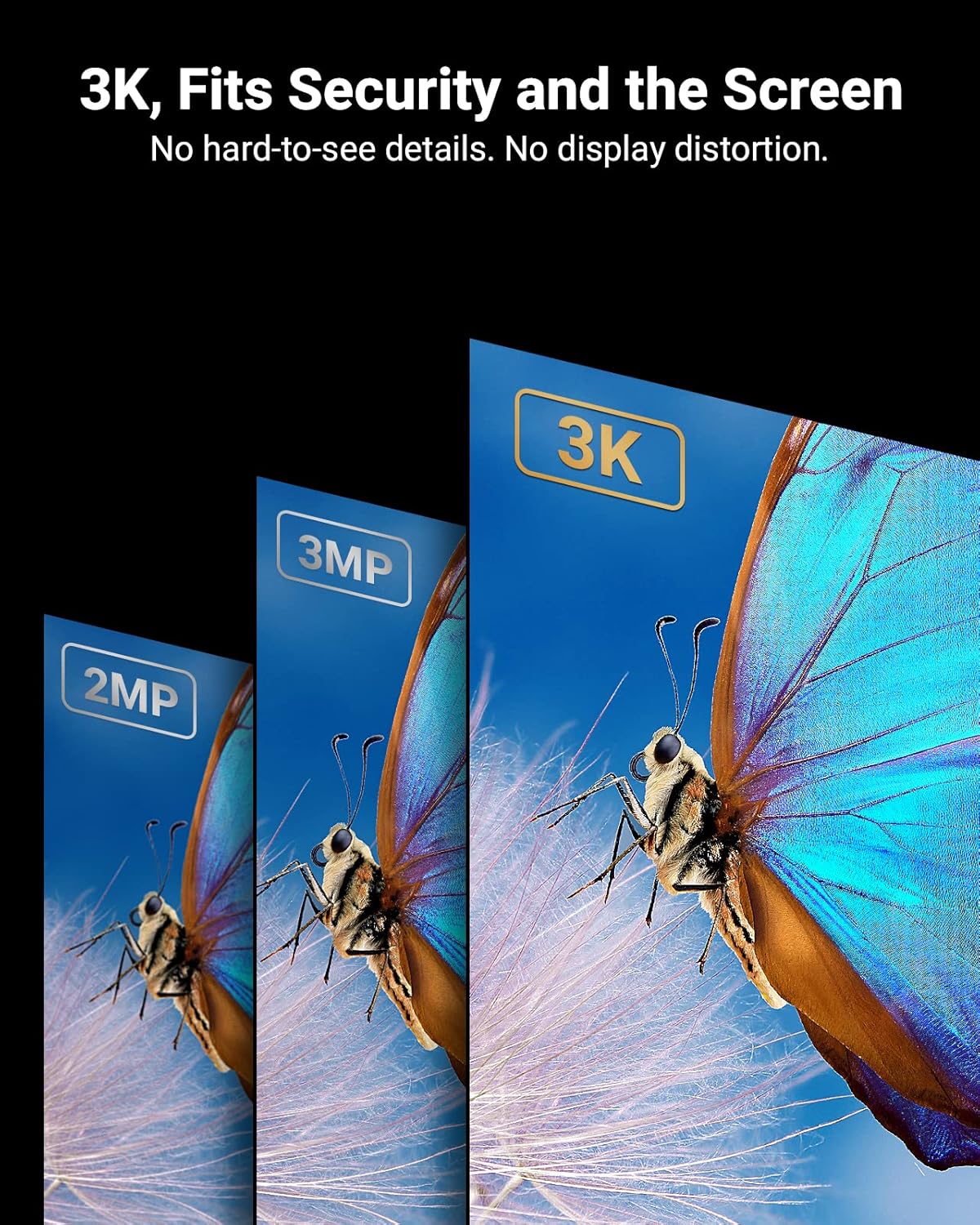 3K outshines other cameras with lower resolution, providing vivid pictures with finer details. While 3K gives another budget-friendly choice than 4K cams, and the quality is also not far behind 4K.