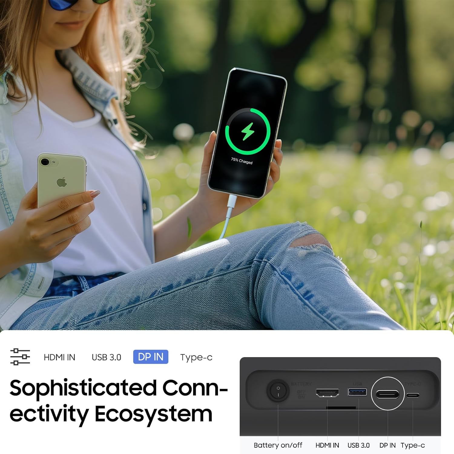 [Multi-mode entertainment]: PackGo adapts to your entertainment needs through various modes: Speaker mode: Enjoy high-quality audio and can play music on your mobile device as a Bluetooth speaker. Game mode: Connect your Switch or PS5 via HDMI cable to enjoy smooth games on the big screen. TV mode: Watch movies and shows. Screen mirroring mode: Mirror your mobile phone or PC screen for conferencing or streaming. White noise mode: Create ambient sounds such as rain, waves or campfire. These features make PackGo a versatile and essential companion for all your entertainment and productivity needs