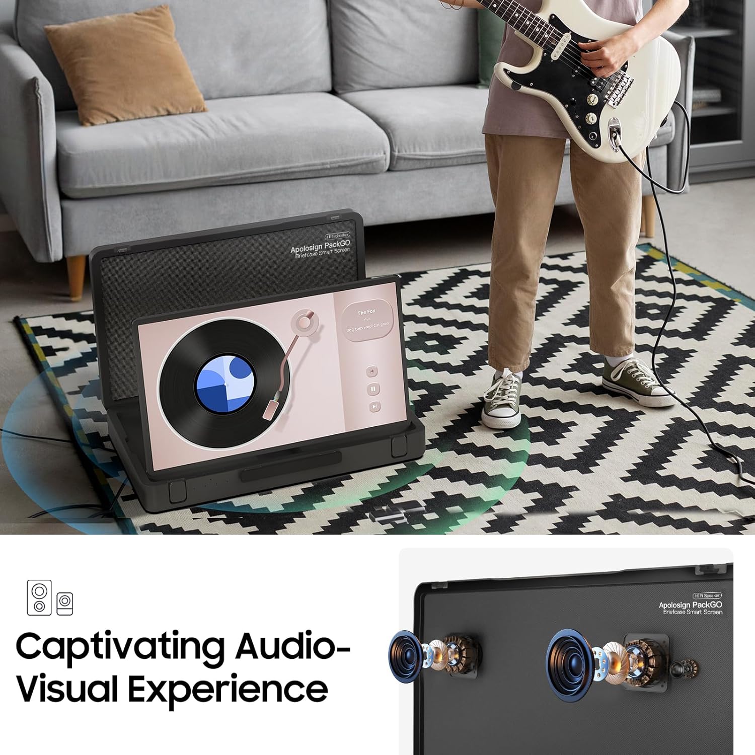 The Apolosign 27-inch Portable Briefcase TV exceeded my expectations! The compact suitcase design makes it incredibly easy to carry, and it’s perfect for travel, parties, or even outdoor gatherings. The Android OS runs smoothly, and the Bluetooth 3D speakers deliver surprisingly rich and immersive sound.The built-in 6-hour battery is a game changer—no need to worry about finding a power source while on the go. The display is sharp and vibrant, ideal for movies, games, or presentations. This smart screen is a unique all-in-one solution for portable entertainment. Highly recommend for anyone looking for a high-quality, mobile TV experience!