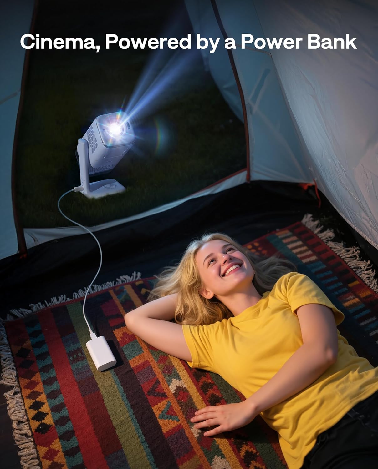 Portable Design | USB-C Powered: This lightweight mini projector is as compact as an outdoor water bottle and runs on USB-C power (requires a power bank with 65W+ output for optimal performance). Whether it’s a backyard hangout, camping trip, or spontaneous NetfIix night, the BOOM Air portable projector brings the big screen anywhere, anytime—no outlets needed