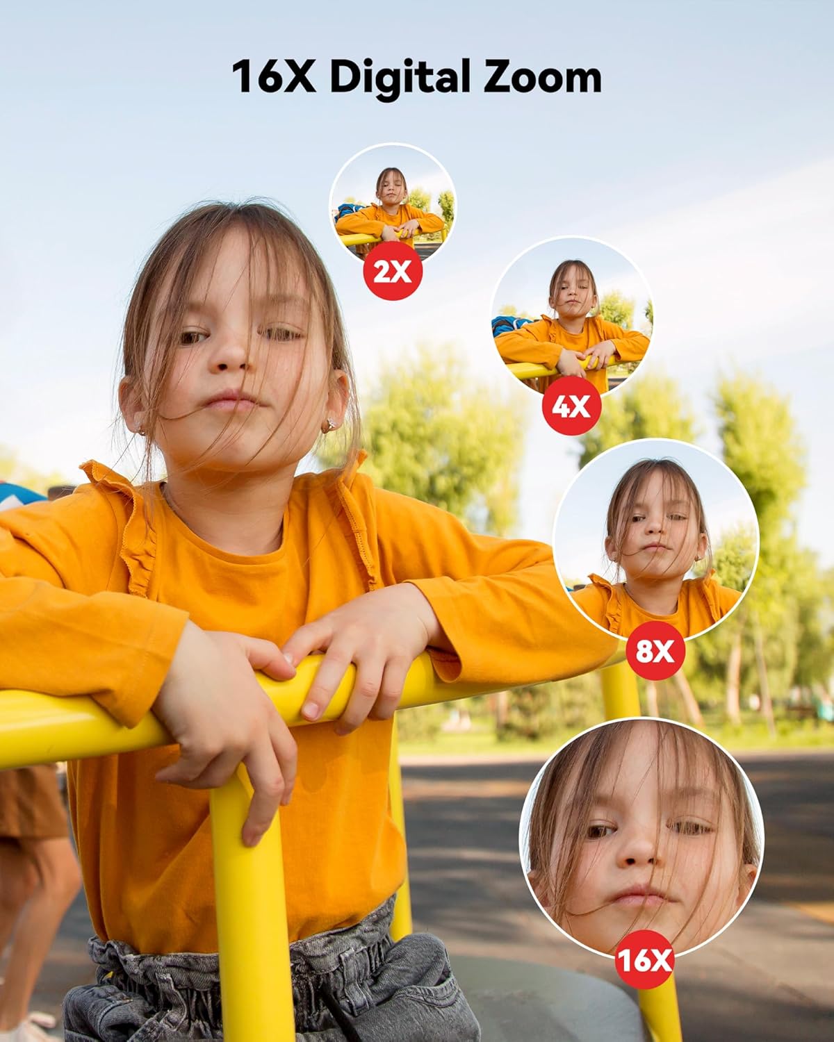 The ROQIOO Digital Camera is an amazing find! I got this for my daughter, and she absolutely loves it. It’s lightweight, compact, and super easy to use perfect for kids and teens. The 1080P video quality is impressive for such an affordable camera, and the 16X zoom works great for capturing distant details.I really appreciate that it comes with a 32GB TF card, so we didn’t have to purchase any extras to get started. The battery life is solid, and it’s been great for her to use for both photography and vlogging.This camera is perfect for beginners, and it’s built with kids in mind. The controls are simple, and my daughter had no trouble figuring it out on her own. The quality is much better than I expected at this price point.Overall, this is a fantastic camera for young photographers or anyone wanting an easy, fun way to capture moments. Highly recommend it!