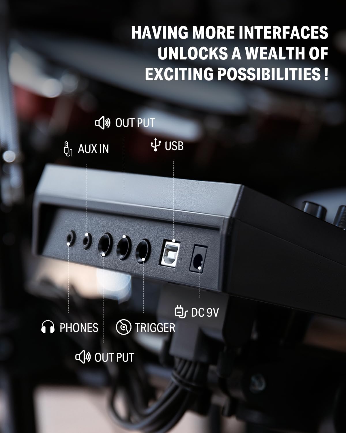[Diverse Sounds Selection] With faithful real drum sampling, the electric drum kit offers 450 sounds and 31 classic and modern drum kits that are more than enough to deliver an exciting performance.