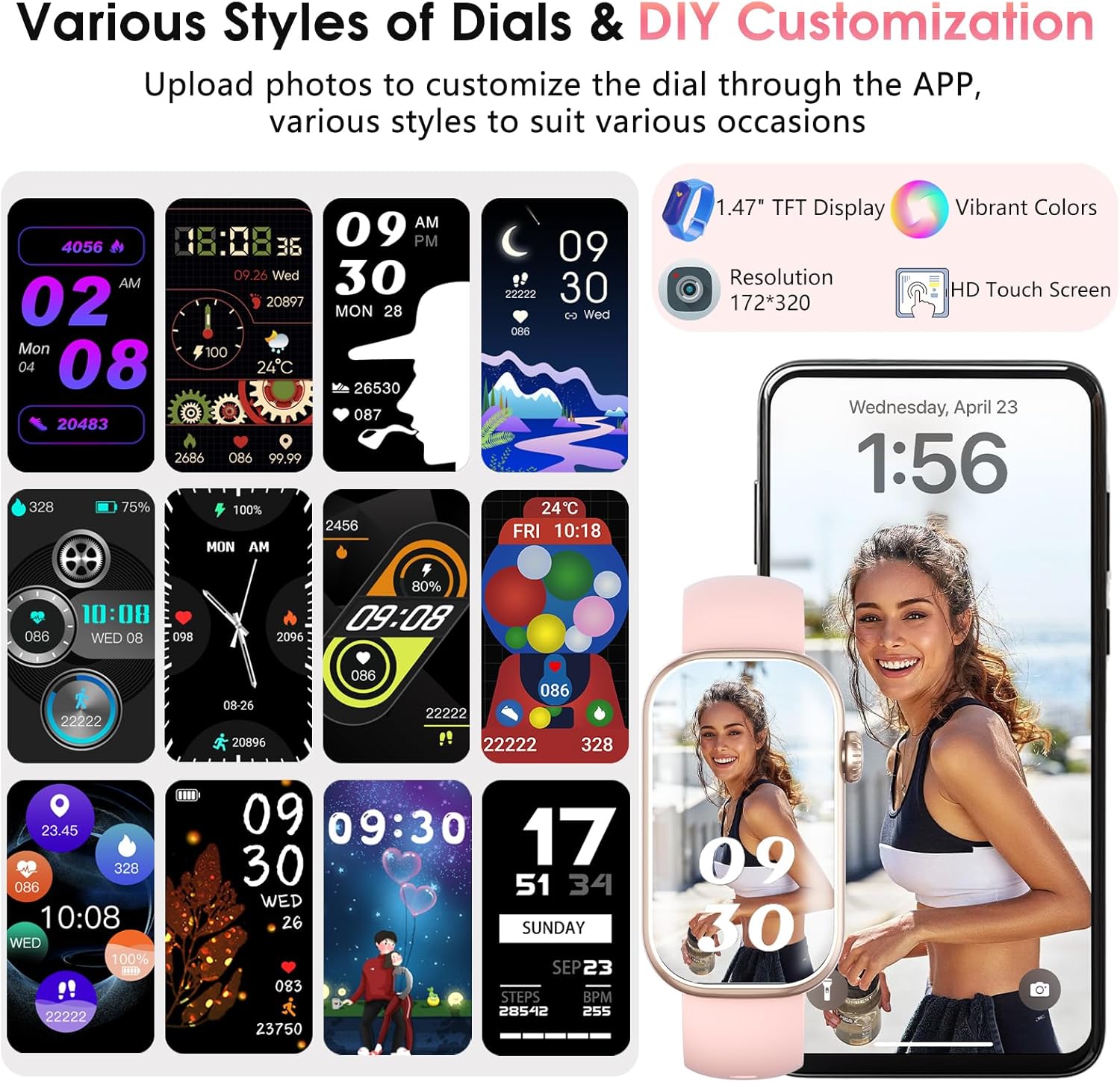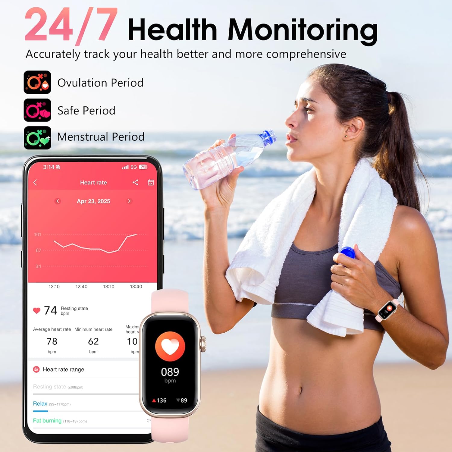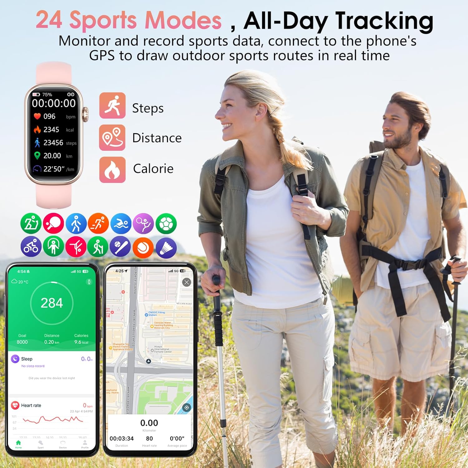 This fitness tracker has become an essential part of my daily routine! The 24/7 dynamic heart rate and blood oxygen monitoring provide valuable insights into my health, while the sleep tracker helps me optimize my rest.The watch’s call and message functionality is convenient, and the 24 sports modes cater to my varied fitness activities. The pedometer and calorie counter keep me motivated, and the step tracking feature encourages me to stay active.I appreciate the IP68 waterproofing, which allows me to wear it worry-free during intense workouts or in rainy conditions.The design is sleek and stylish, suitable for both men and women. The long screen I prefer, fits on my wrist better and doesn’t irritate me like other watches do. Overall, I’m impressed with the features, accuracy, and value of this fitness tracker. It’s a great companion for anyone looking to take control of their health and fitness!