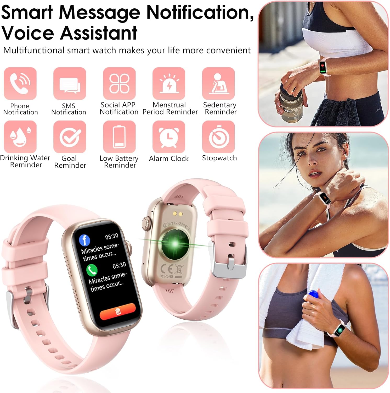 Smart Notifications & Voice Assistant: Health tracker watch for women and men has built-in AAC audio technology, can make or receive calls on wrist after connecting to Bluetooth; receive messages, emails, and notifications from social media apps such as WhatsApp, Instagram, and Facebook to avoid missing important messages during meetings, sports, or commuting; equipped with a smart voice assistant, can be controlled by voice commands, is convenient to use
