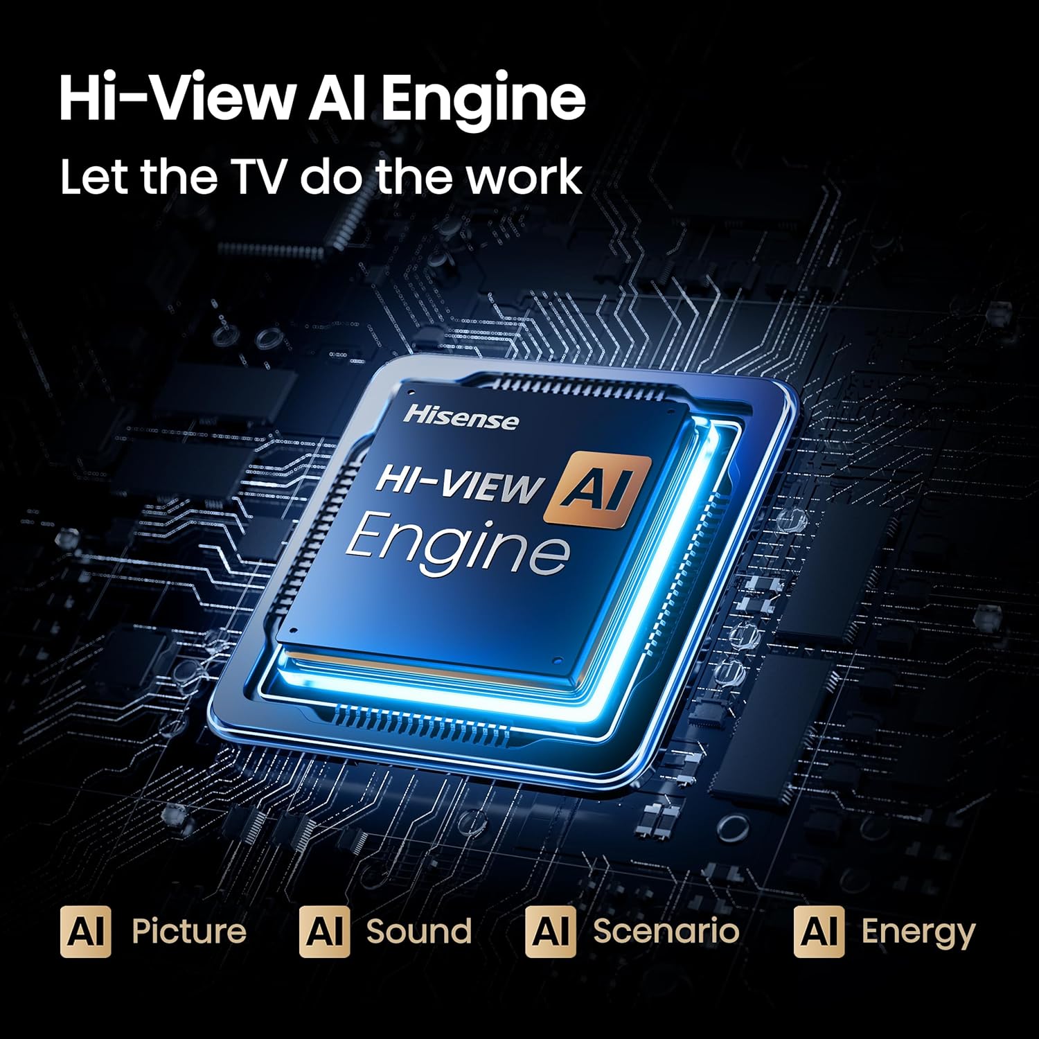 HI-VIEW AI ENGINE: Feel like you’re in the stands even when you’re watching from your couch. Controlled by a high-powered AI chipset, Hi-View AI Engine uses advanced picture processing like AI Picture, AI Sound, AI Scenario, and AI Energy to sharpen and boost the quality of whatever’s on your TV