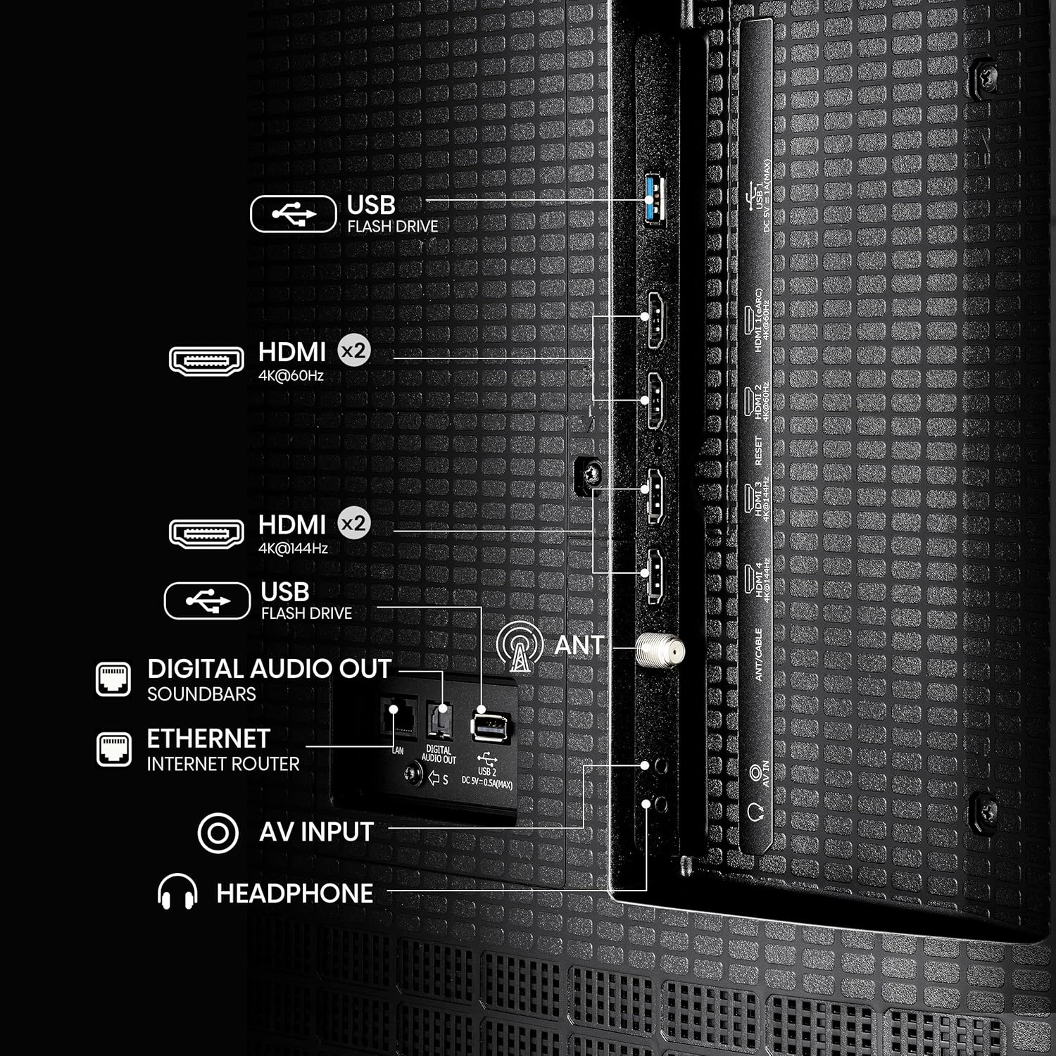 NATIVE 144HZ PANEL WITH MOTION RATE 480: With a Native 144Hz Panel and Motion Rate 480, this TV delivers ultra-smooth motion and crystal-clear detail—even during the fastest on-screen action. Perfect for high-speed gameplay and fast-paced content