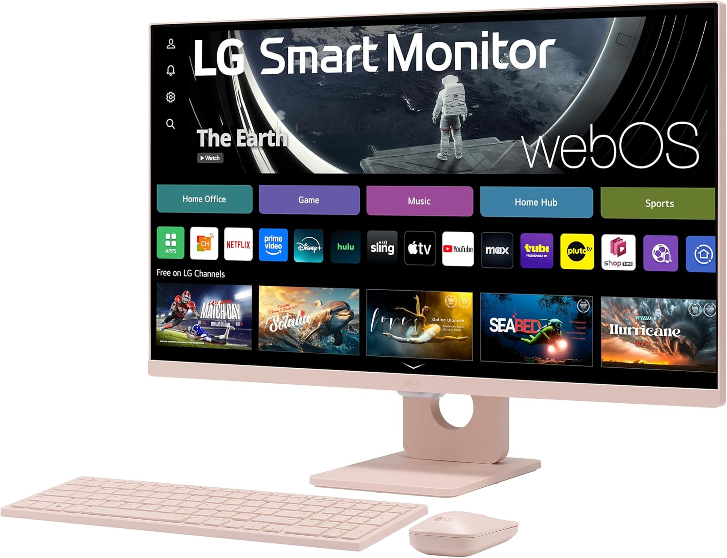 LG 27SR5BF-P 27-inch FHD (1920×1080) Smart Monitor with Streaming TV, webOS, Wireless Keyboard, Mouse, HDR10, IPS Display, webOS, Speaker, ThinQ App, Remote Control, Pink