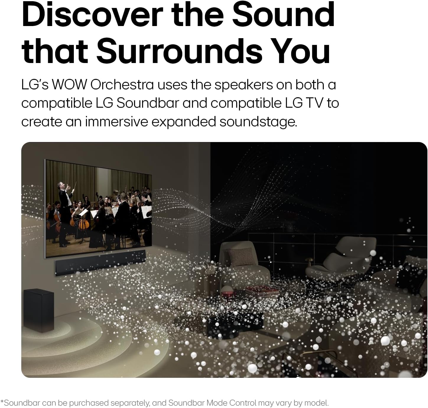 *Dolby, Dolby Vision, Dolby Atmos, and the double-D symbol are registered trademarks of Dolby Laboratories Licensing Corporation. Manufactured under license from Dolby Laboratories. Confidential unpublished works. Copyright 2012–2024 Dolby Laboratories. All rights reserved.**Internet connection and subscriptions to streaming services are required; number of LG Channels subject to change.***Subscription and compatible gaming controller are required.