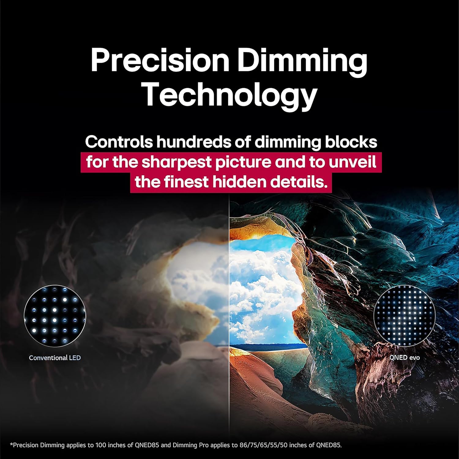 MINILED BACKLIGHTING WITH PRECISION DIMMING PRO: LG Precision Dimming Pro controls MiniLEDs with hundreds of dimming zones that can be individually controlled for better black levels and brighter colors.
