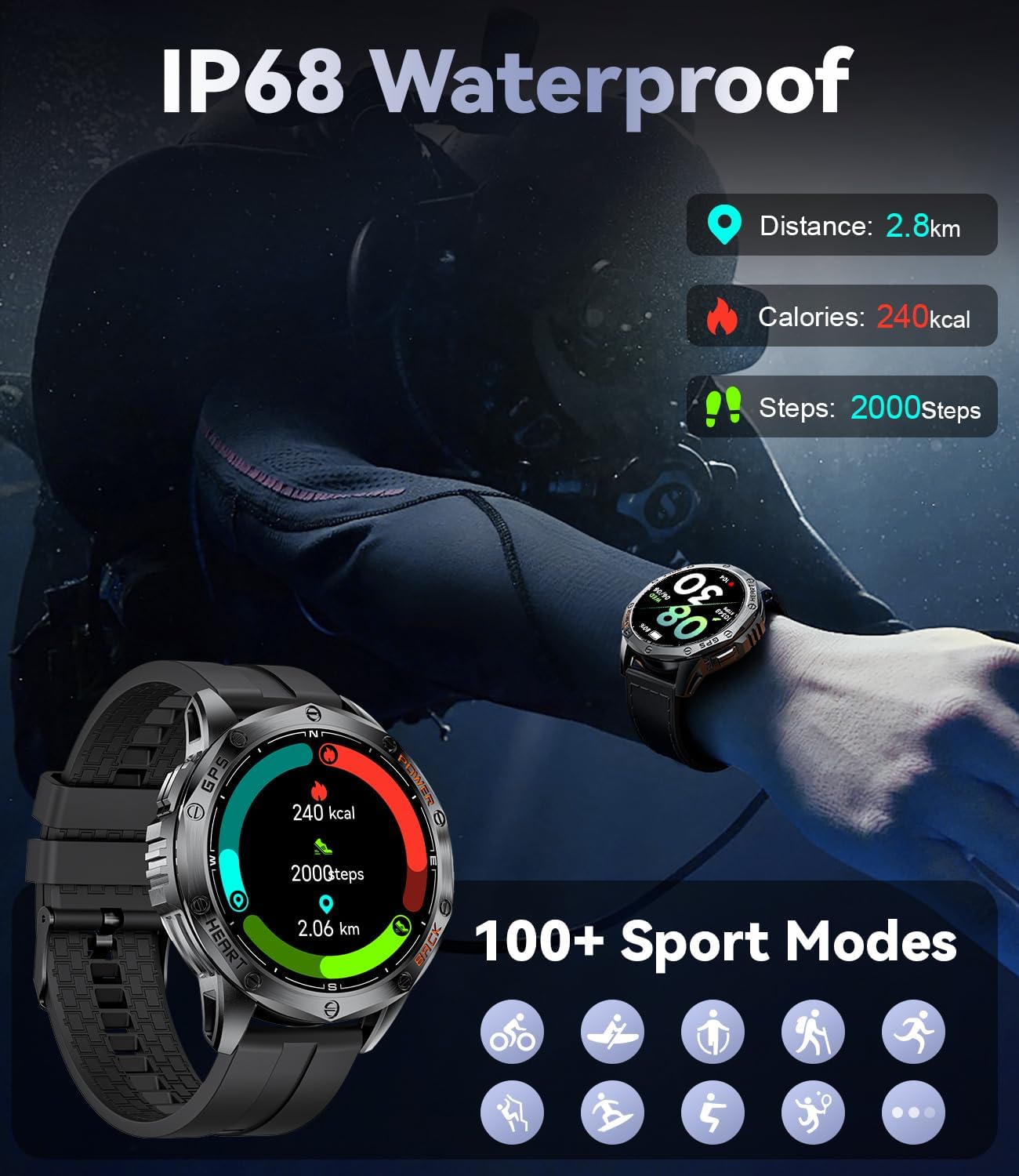 🛠【Military Smart Watch & Ergonomic Design】 This military smart watches has undergone rigorous testing to meet military standards, offering exceptional durability and shock resistance. Whether in extreme weather conditions or during intense activities, the smartwatch maintains its efficient functionality. Its casing is made from high-strength alloy materials, effectively resisting scratches, impacts, and corrosion, making it suitable for various harsh environments. Additionally, smart watches design takes ergonomics into full consideration, with a soft and comfortable strap that fits snugly around the wrist, ensuring comfort even during prolonged wear.