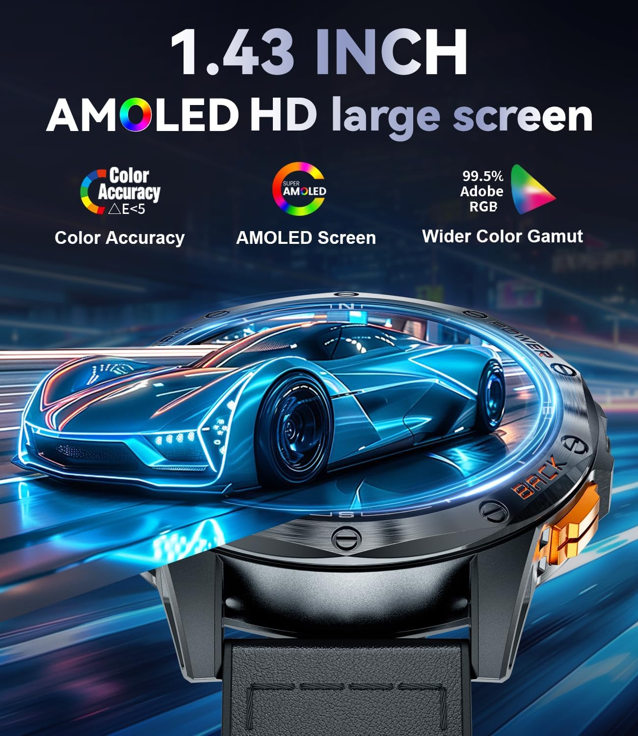 🔋【1.43” AMOLED Screen & 600mAh Battery】 This amoled smart watch is equipped with 1.43” AMOLED Always Dispaly touchscreen, 466*466 pixel, delivering excellent image quality and color representation. Whether in sunlight or at night, you can easily read information clearly. The round smart watch features highly sensitive touch responsiveness, ensuring quick reactions to every touch and enhancing the user experience. The lige smart watches men with 600 mAh battery that supports fast charging, it only takes 2.5 hours to fully charge, can last 5-7 days with regular use, standby time of up to 45 days, alleviating concerns about frequent recharging.