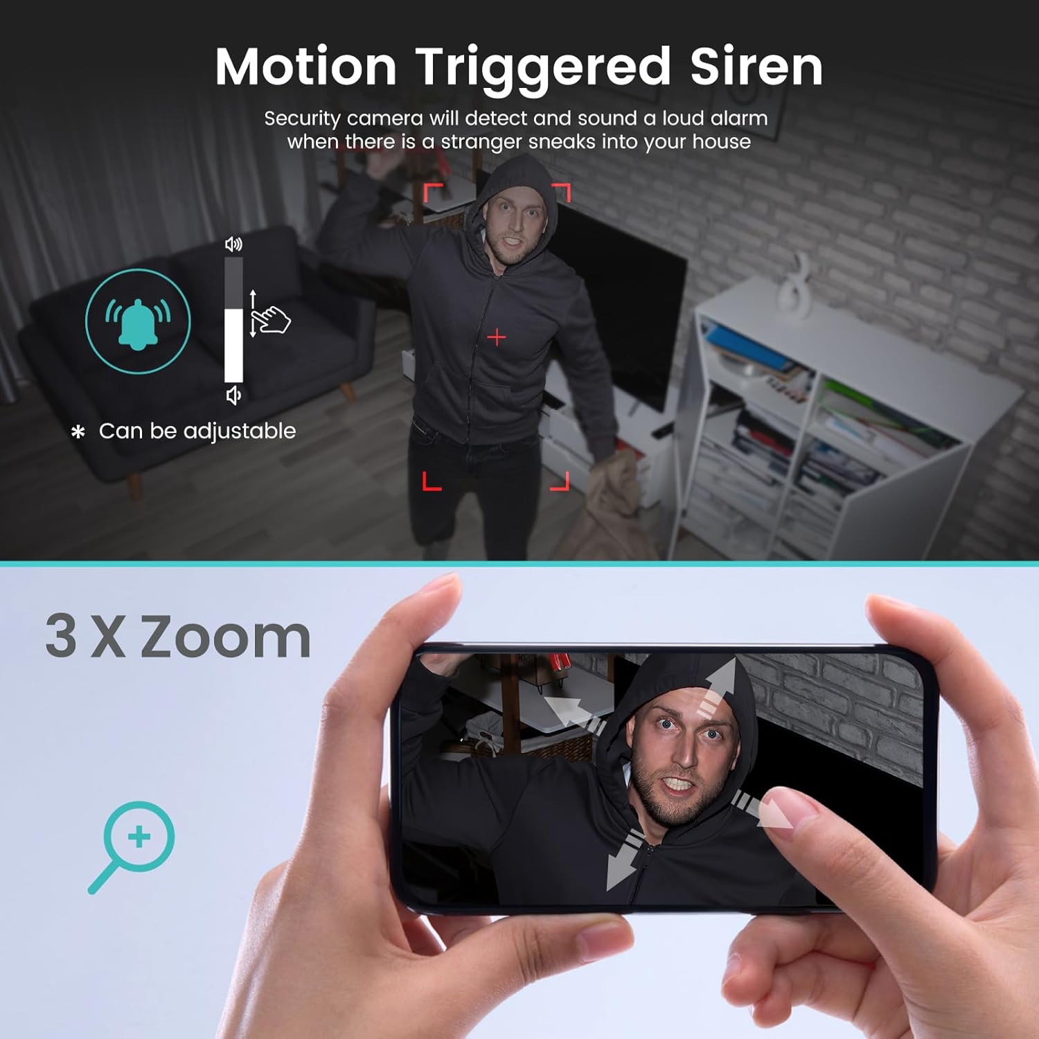 【Human Motion Detection & Real Time Alerts】Litokam indoor security camera can reduce false alarms with a human filtering function and receive instant alerts on your phone when motion is detected. Alert notifications will be sent to you if human motion is detected. Litokam home camera can be adjusted sensibility to ensure you won’t be disturbed by frequent alarms. (Only works with 2.4GHz WiFi – If your Wi-Fi is 5GHz, please choose the Litokam indoor security camera of the 5GHz version.)