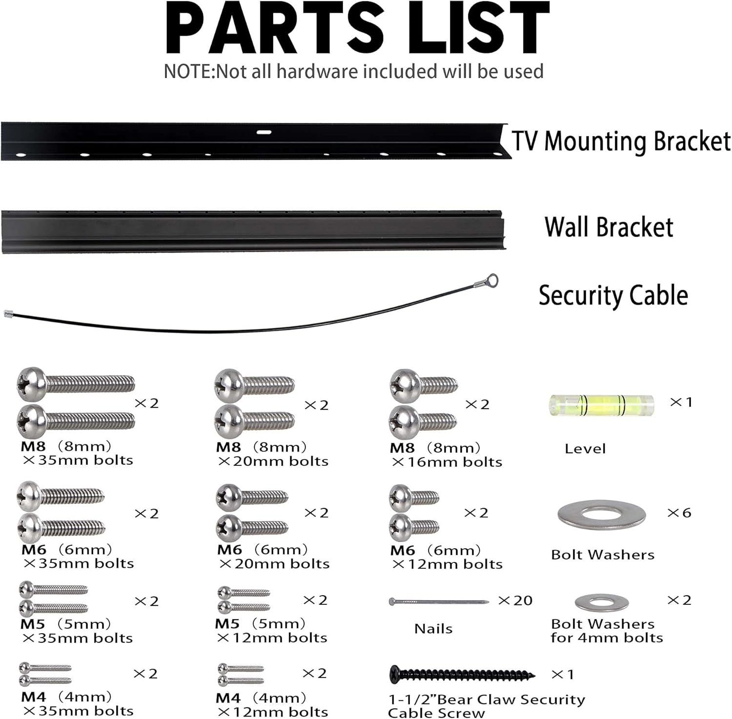No Stud TV Wall Mount, Drywall Studless TV Hanger No Damage, No Drill, Non Screws, Dry Wall Flat Screen TVs Easy Install Bar Bracket fits VESA 12-55 inch TVs up to 99 lbs, Include Hardware Levels