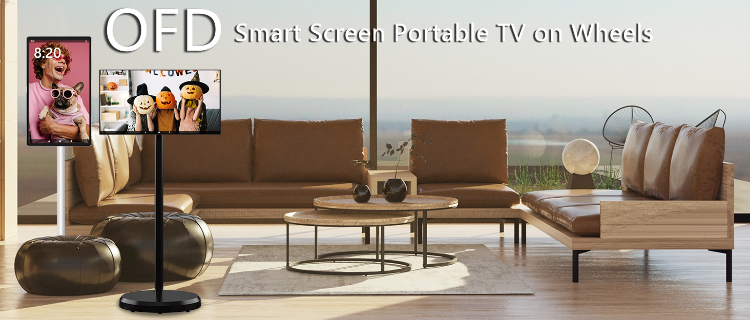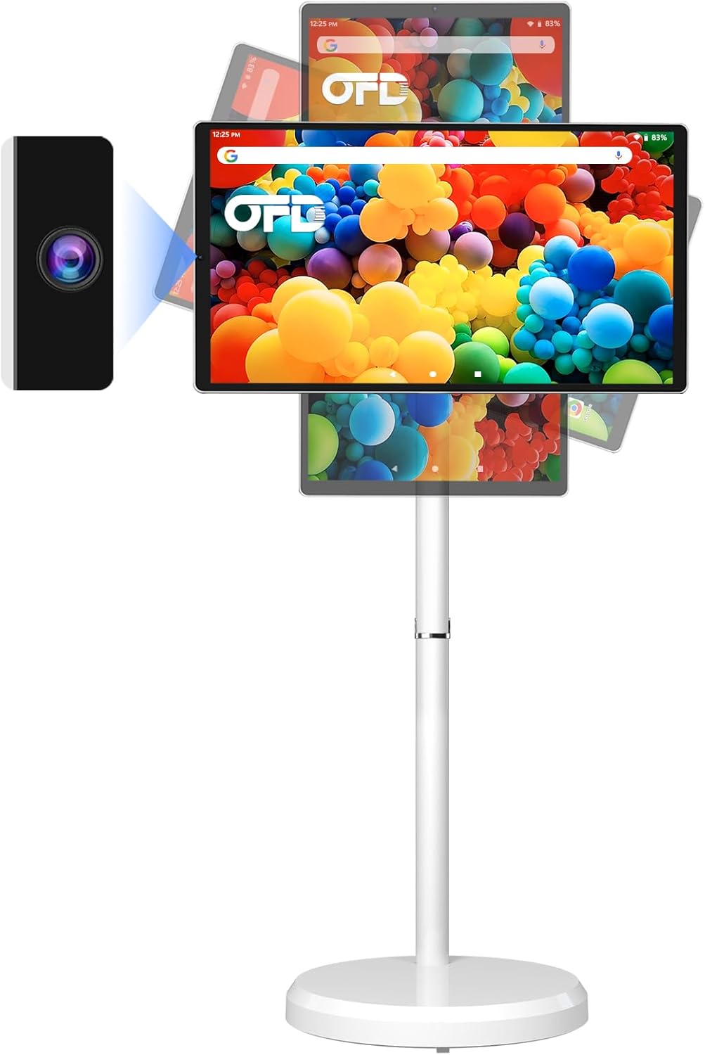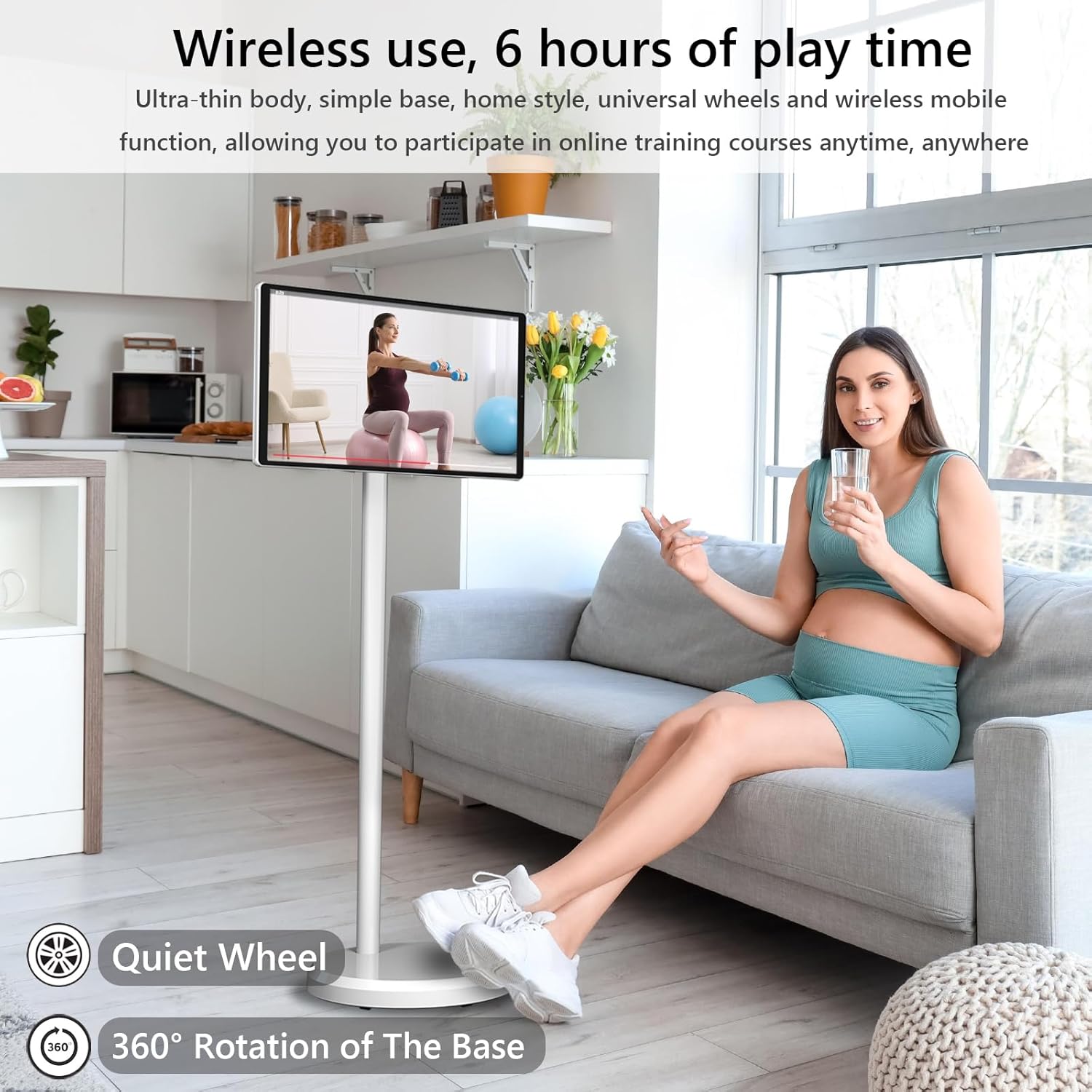 OFD 21.5 Inch Portable TV on Wheels 1080P,100%sRGB,6GB RAM+128GB Storage,RollingTV,Touch Screen Large Tablet with Base,8MP Webcam,Android 13 OS| Wireless Projection| 6000 mAh Battery(Play 4-6H),White