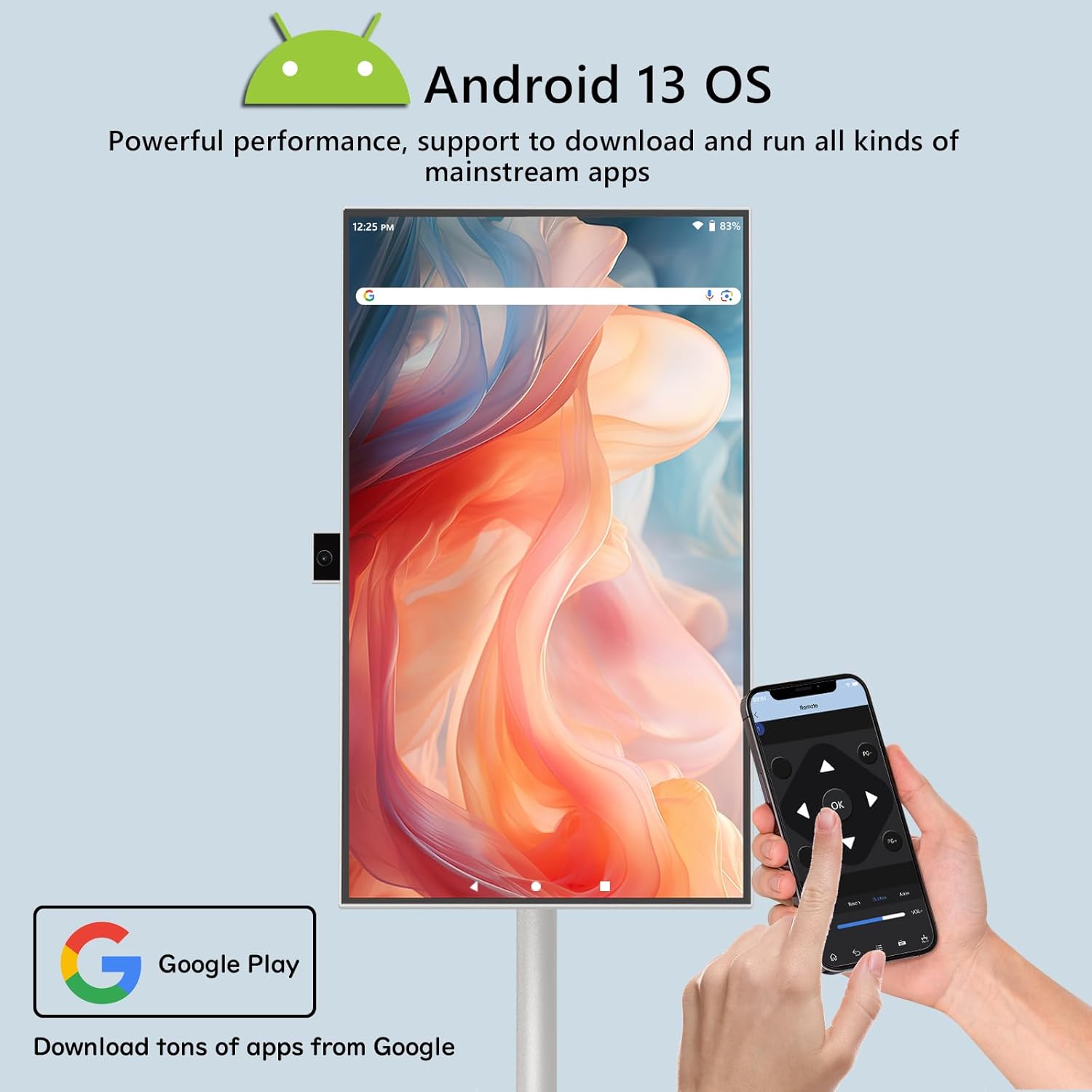【Android system supports Google Store】The rotatable screen is based on Android 13 system and is equipped with 4GB RAM and 64GB storage space. This device has been fully certified by Google and allows you to access the Google Play Store, allowing you to easily download and run any application. It can interact well with Phone, Tablet or other devices to achieve your work needs and entertainment moments.
