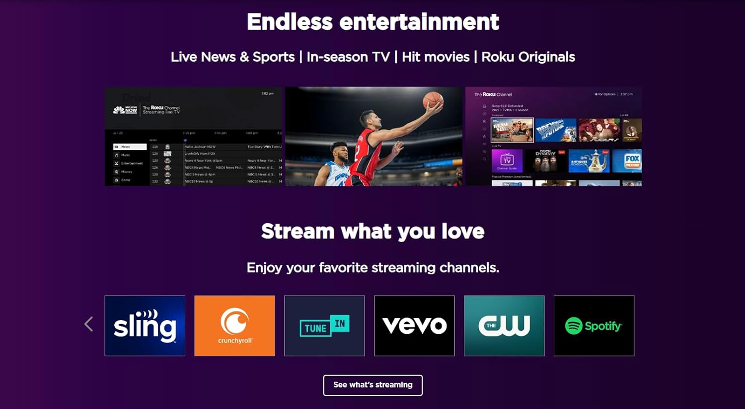 Roku Smart TV – wirelessly stream 500,000+ movies and TV episodes available across thousands of free or paid channels, conveniently presented through your own customizable home screen