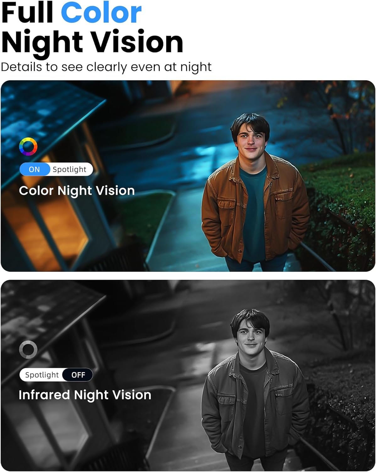 【QHD 2K Resolution & Full Color Night Vision】 Unlike other 1080p cameras, the MISECU security cameras wireless outdoor offers 2K UHD resolution, providing double the clarity. It features a wide-angle field of view and boasts two night vision modes:full-color and infrared, allowing for a maximum monitoring range of 33 feet. This makes sure that you are able to obtain high-quality videos and images, even in dimly lit environments