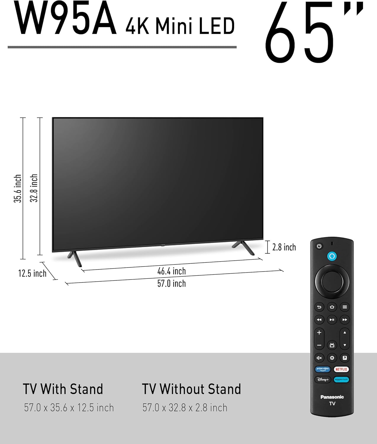 Panasonic W95 Series 65-inch Mini LED 4K Ultra HD Smart Fire TV, Sport Stadium Mode, ATSC3.0, Dolby Vision IQ, Dolby Atmos, HDR10+ Adaptive, Press and Ask Alexa, 144Hz, Wall-mountable – 65W95AP