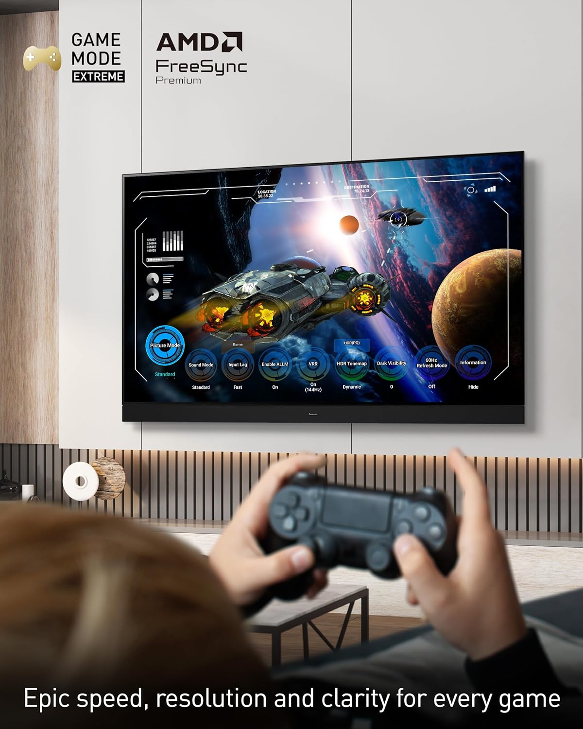 Level Up Your Gaming: Game Mode Extreme supports the latest gaming features like HDMI2.1, 144Hz refrash rate, VRR, AMD FreeSync Premium. A Game Control Board gives you easy access to gaming settings.