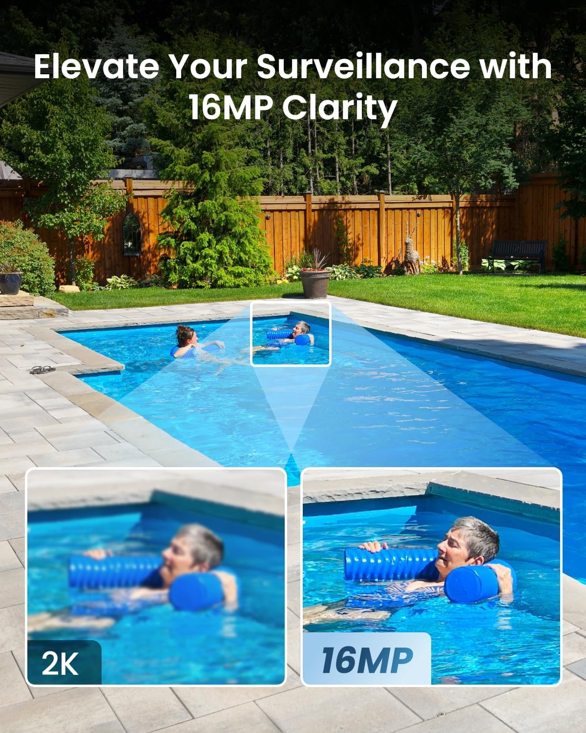 16MP UHD VIEW & TWO NIGHT VISION MODES: Featuring two 4K image sensors, this outdoor security camera brings 16MP ultra-clear visuals. With 8 spotlights and an F1.6 large aperture, it captures details in vivid colors, even at night. Switch to IR night vision to match your needs.