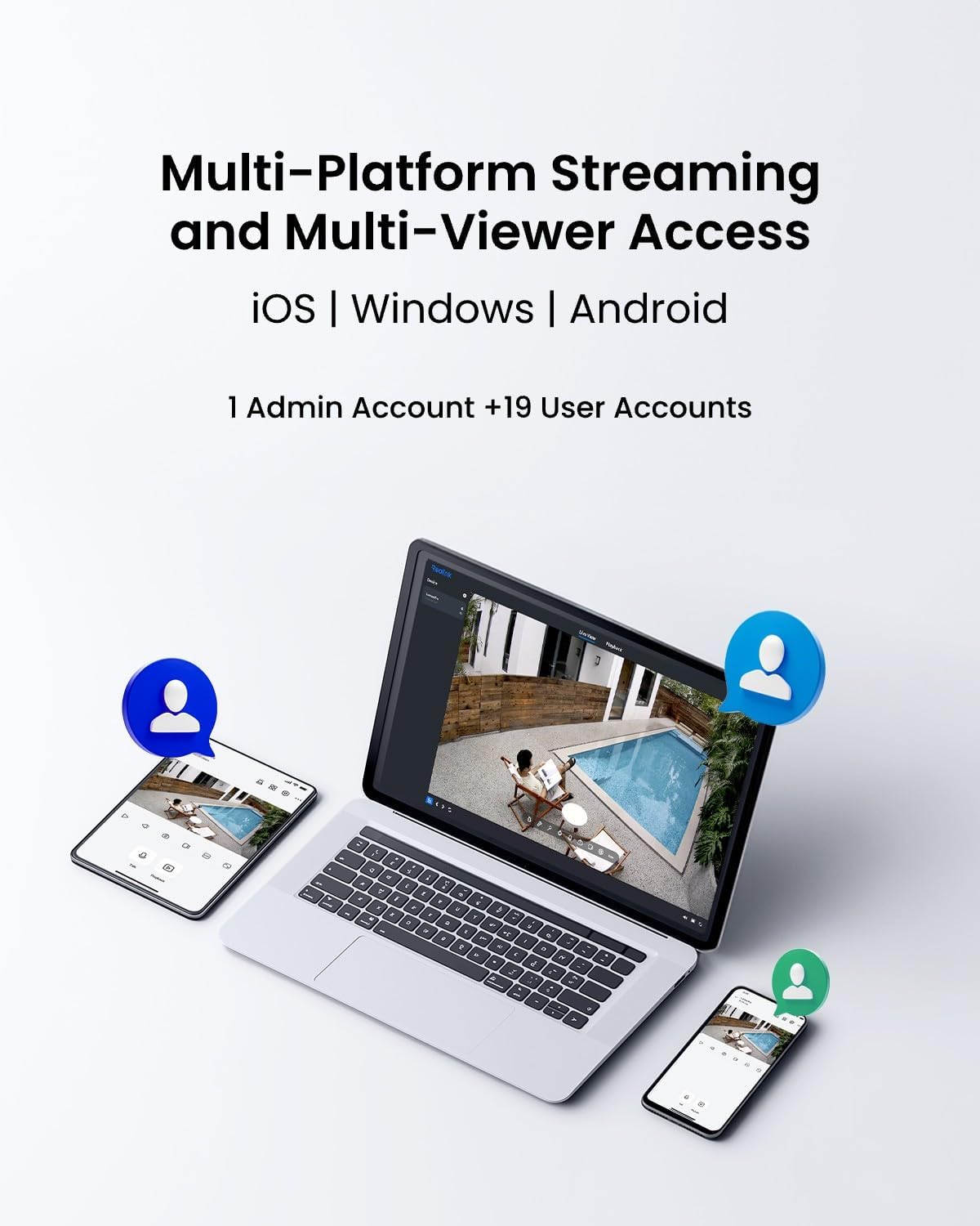 EASY INSTALLATION & REMOTE ACCESS: Enjoy hassle-free DIY installation and flexible placement anywhere with a power outlet. Share access with up to 19 other users for live viewing and playbacks on your smartphone and PC anytime.