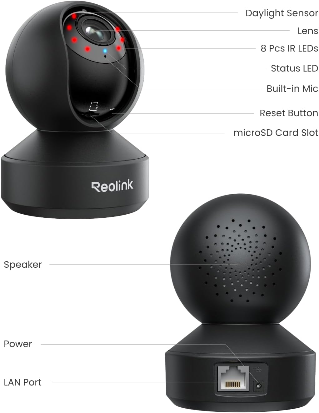 REOLINK Smart 4K UHD Pan & Tilt Dual-Band Wi-Fi 6 Indoor Security Camera with 3X Optical Zoom, Auto-Tracking, People/Pet Detection, Crying Sound Detection, Privacy Mode, Bluetooth Setup, E1 Zoom-Black