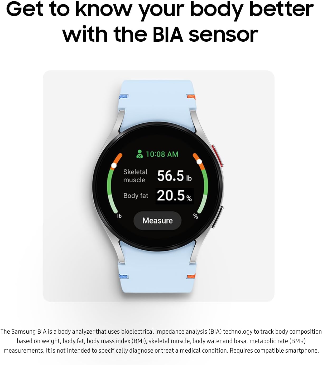 ALL-DAY COMFORT. EVERYDAY VERSATILITY: Look great with the light and comfortable Galaxy Watch FE; Combining function and fashion, it’s made to move with you, whether you’re taking a casual stroll or kicking it up a notch in your spin class