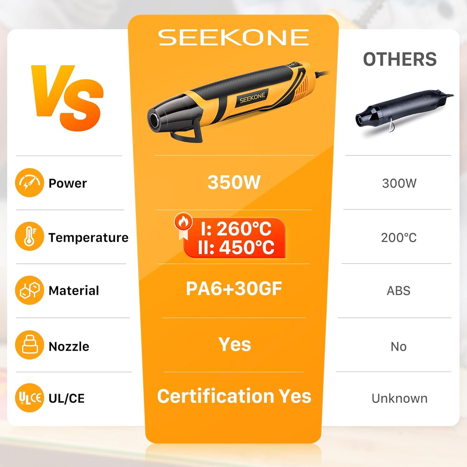 13 reviews for SEEKONE Mini Heat Gun, 350W 2-Temp Settings 500℉ & 842℉(260℃& 450℃) Fast Heat Hot Air Gun Tool with Reflector Nozzle and 4.9Ft Long Cable Overload Protection for Crafting, Vinyl Wrap and Shrink Tubing