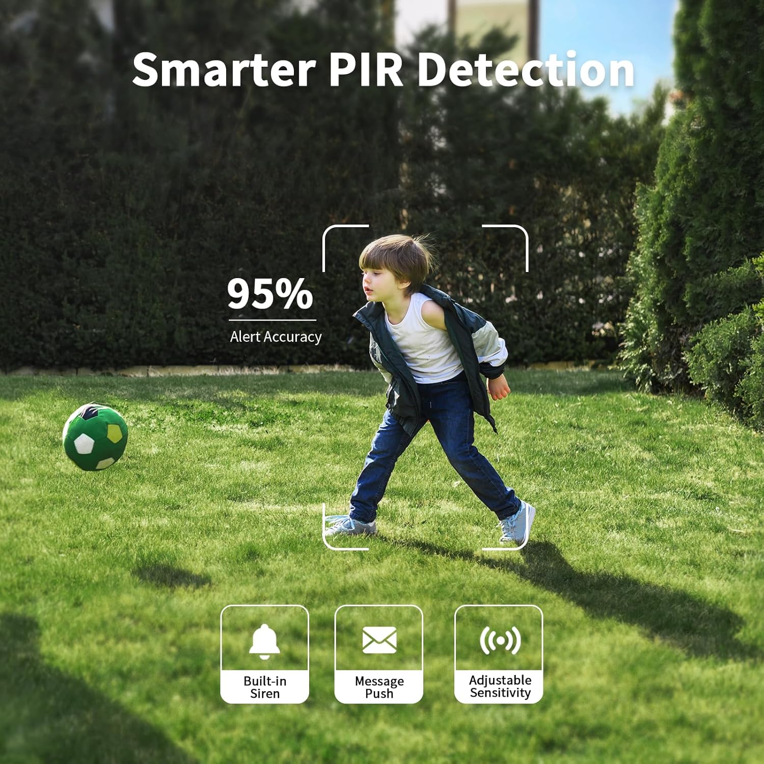 2K Full HD & Stunning Night Vision: Capture every event that occurs around your home in ultra-clear 2K resolution. The powerful white spotlight and built-in infrared LED array can help you capture colorful pictures and videos at dark, see any corner you want to monitor, let you sleep peacefully.