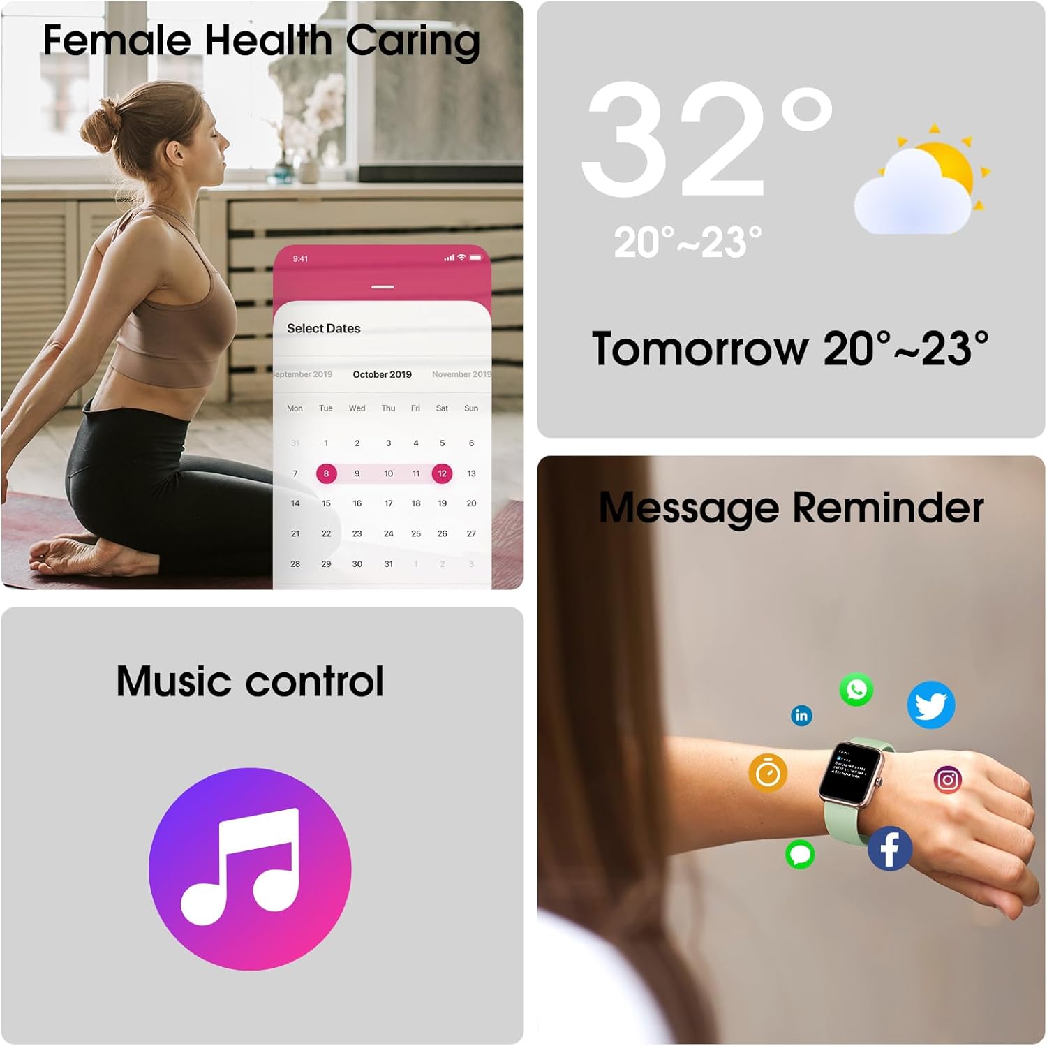 The smart watches for women and men can receive message notifications from smartphones, which helps you stay up-to-date and avoid missing important information. (The watch can not make calls or text back).