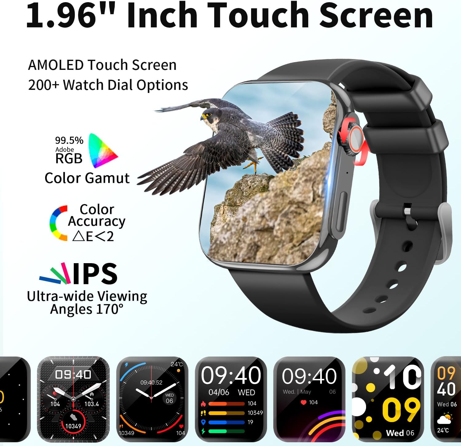 【1.96 Inch Screen and DIY Dial】 ActiVibe smartwatch is equipped with a 1.96 inch AMOLED touch screen, all-aluminum alloy metal exterior with two different color straps makes it an attractive watch for both daily and business occasions. This men’s and women’s smartwatch supports multiple languages and carries nine different dials itself that can be quickly switched by rotating the circular button. The fitness tracking software “FitCloudPro” can replace nearly 180+ dials, or you can DIY customize.