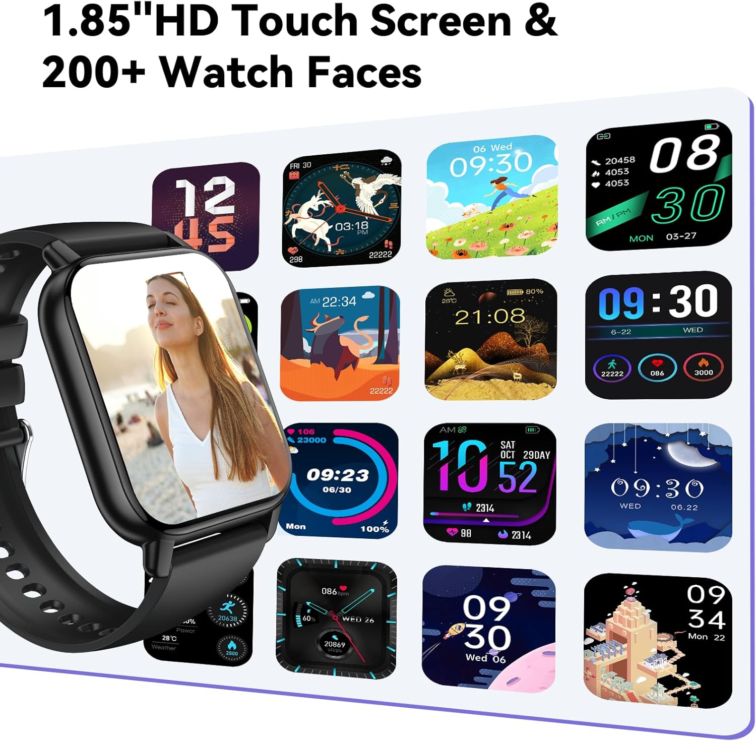 Smart Watch for Men Women with Bluetooth Call/Message Reminder, Smartwatch 1.85″ Touch Screen, Fitness Watch Heart Rate/Sleep/Calories/Steps Monitor, 112+ Sport Mode, Activity Tracker for Android iOS