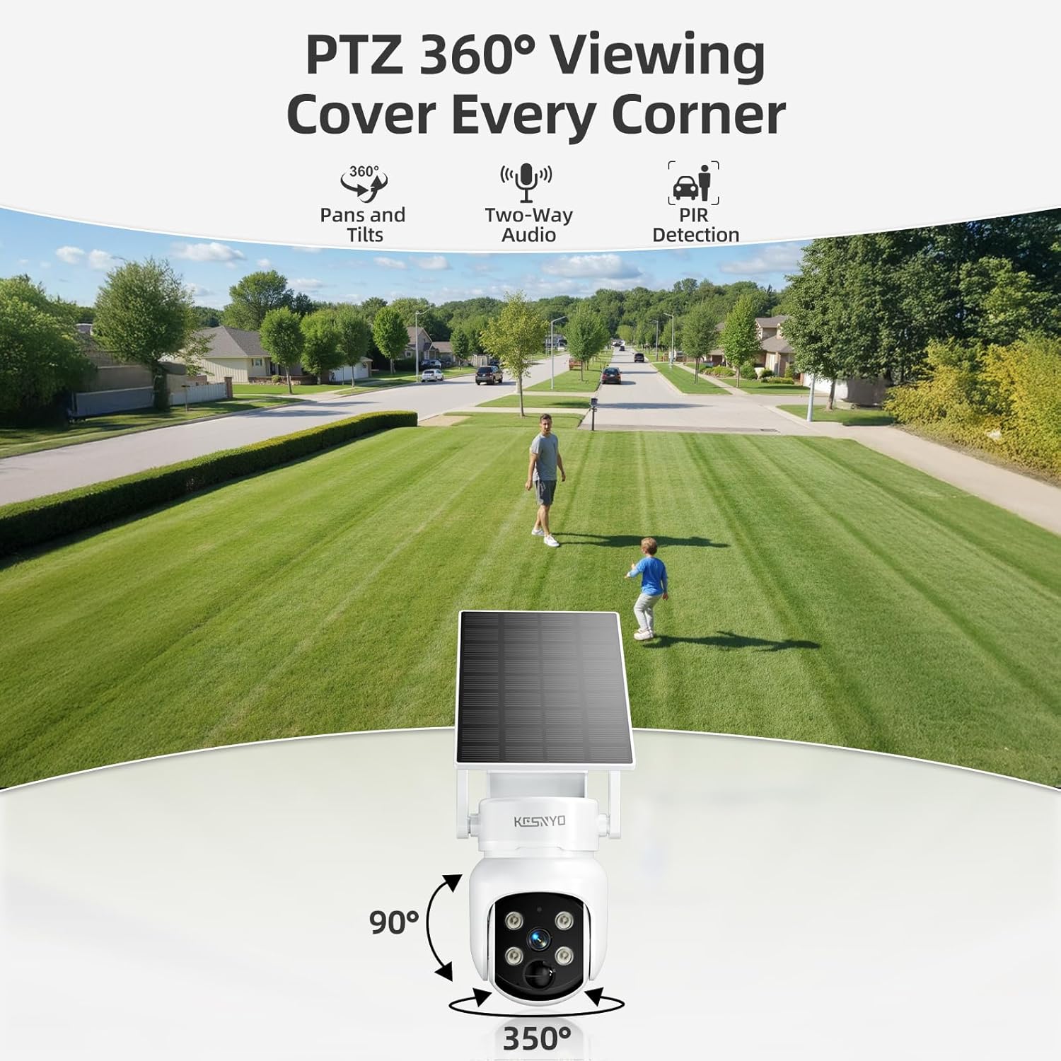 𝟑𝟔𝟎° 𝐏𝐚𝐧 𝐚𝐧𝐝 𝐓𝐢𝐥𝐭 𝐂𝐨𝐯𝐞𝐫𝐚𝐠𝐞 𝐚𝐧𝐝 𝐀𝐥𝐥-𝐀𝐭-𝐎𝐧𝐜𝐞 𝐌𝐨𝐧𝐢𝐭𝐨𝐫𝐢𝐧𝐠: Designed for home security, the Pan and Tilt solar wireless security camera outdoor offers full 360° coverage, eliminating blind spots. Users can monitor all outdoor security camera from a single screen, enhancing visibility and control over their property like never before.