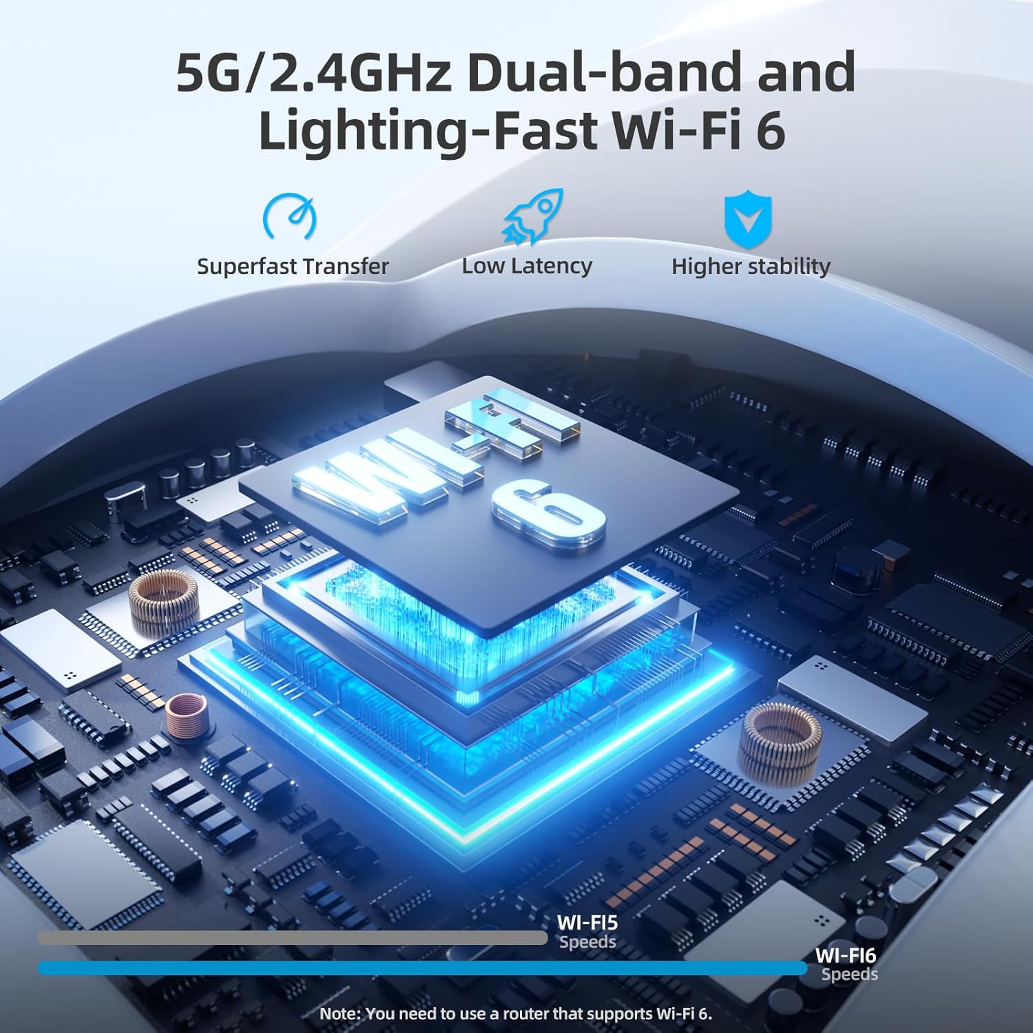 𝐔𝐥𝐭𝐫𝐚-𝐥𝐨𝐧𝐠 𝐒𝐭𝐚𝐧𝐝𝐛𝐲 𝐓𝐢𝐦𝐞 𝐚𝐧𝐝 𝐒𝐭𝐚𝐛𝐥𝐞 𝐖𝐢-𝐅𝐢 𝐜𝐨𝐧𝐧𝐞𝐜𝐭𝐢𝐨𝐧:The solar camera system eliminates the hassle of wiring. Separate solar panel can be installed independently, allowing for versatile positioning. Both camera and base station support dual-band (2.4G/5G) Wi-Fi, utilizing Wi-Fi 6 technology to significantly enhance connection stability and extend installation range. The base station kit supports offline monitoring; even without internet, the cameras can continue to function and store footage.