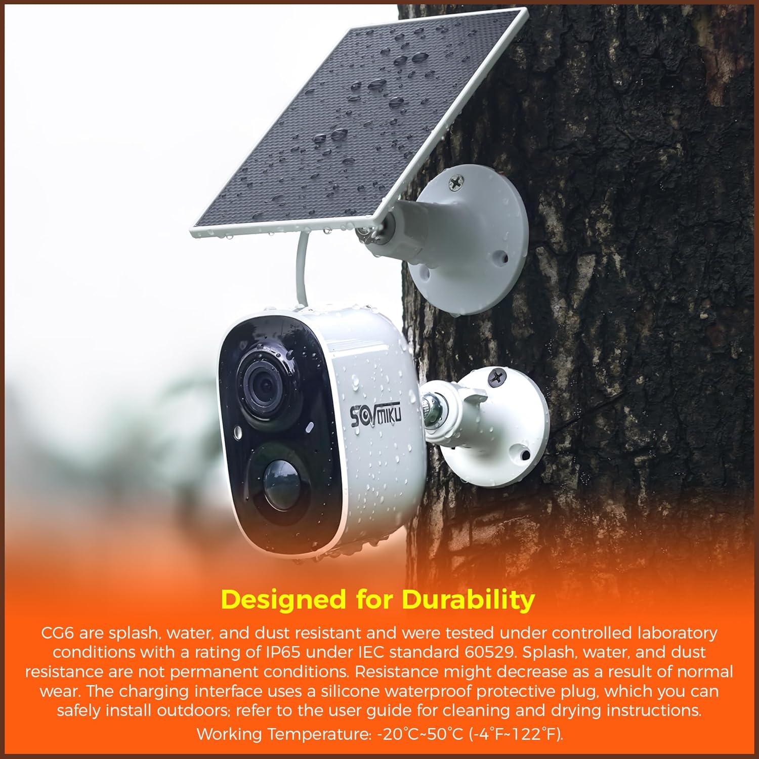 ๐๐ฒ๐๐ถ๐ด๐ป๐ฒ๐ฑ ๐ณ๐ผ๐ฟ ๐ฑ๐๐ฟ๐ฎ๐ฏ๐ถ๐น๐ถ๐๐๏ผCG6 are splash, water, and dust resistant and were tested under controlled laboratory conditions with a rating of IP65 under IEC standard 60529. Splash, water, and dust resistance are not permanent conditions. Resistance might decrease as a result of normal wear. The charging interface uses a silicone waterproof protective plug, which you can safely install outdoors; refer to the user guide for cleaning and drying instructions.