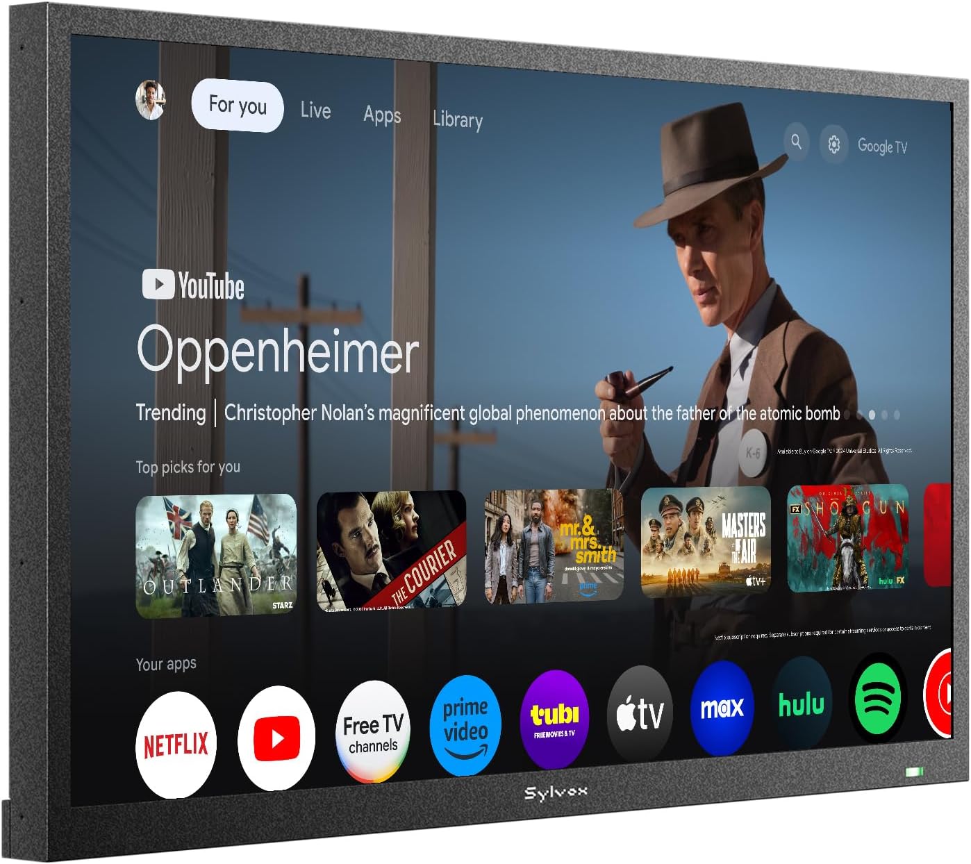 32 inch Full Sun Outdoor TV Sunlight Readable: The Sylvox Pool SE series outdoor smart TV boasts a maximum brightness of 1500nit, which is 6-7 times brighter than a regular home TV. Even under direct sunlight, it ensures a clear viewing experience. High brightness, 1080P FHD, 2*10W Speakers – create your outdoor theater and enjoy quality time outdoors
