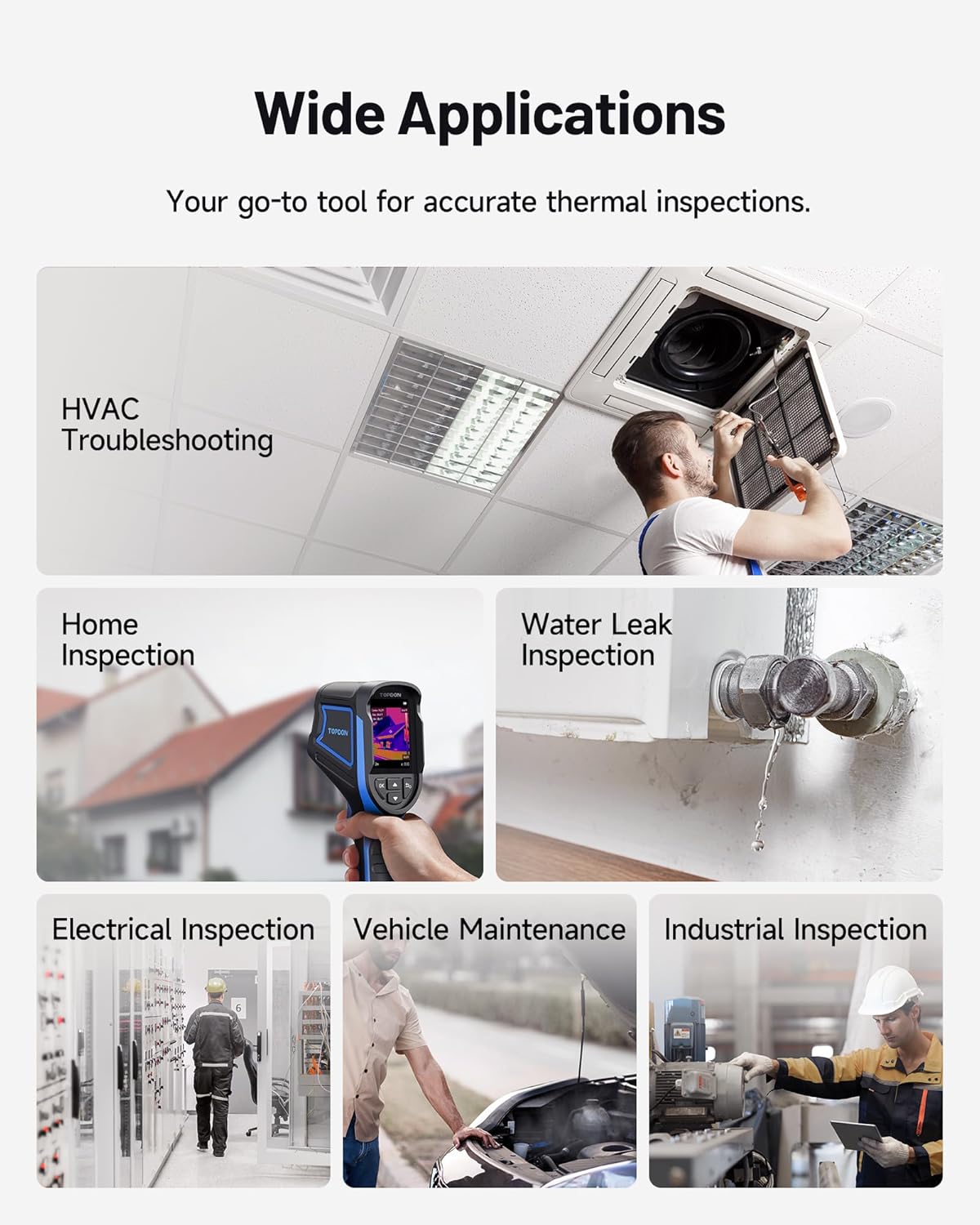 【Enhanced Thermal Clarity】Start with 128×128 thermal imaging and enhance to 240×240 resolution with TISR technology for greater details. The wide 40°x 30° field of view and a 25Hz refresh rate deliver accurate, smooth thermal images—ideal for detailed inspections in homes and on electrical systems and machinery.