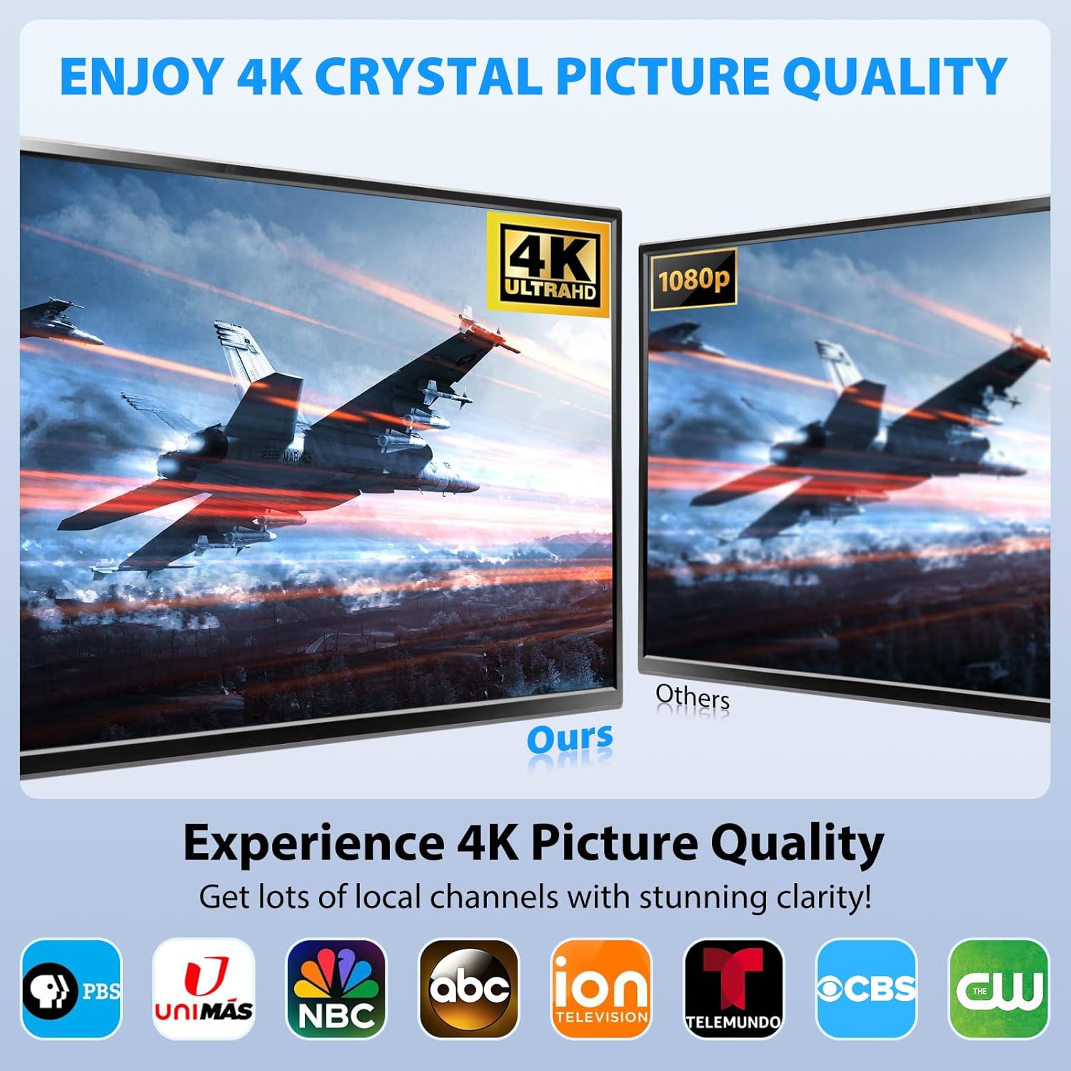 【Zero-Cost 4K UHD TV Antenna】Enjoy watching 4K UHD TV at no cost! Say goodbye to hefty TV bills with our Full HD antenna for smart TV, featuring the latest intelligent IC chip for maximum signal amplification and interference prevention. Access major networks like CBS, ABC, FOX, NBC, CW, PBS, ION, UNIVISION, and more local channels. Supports 4K, 1080p, and other digital formats.