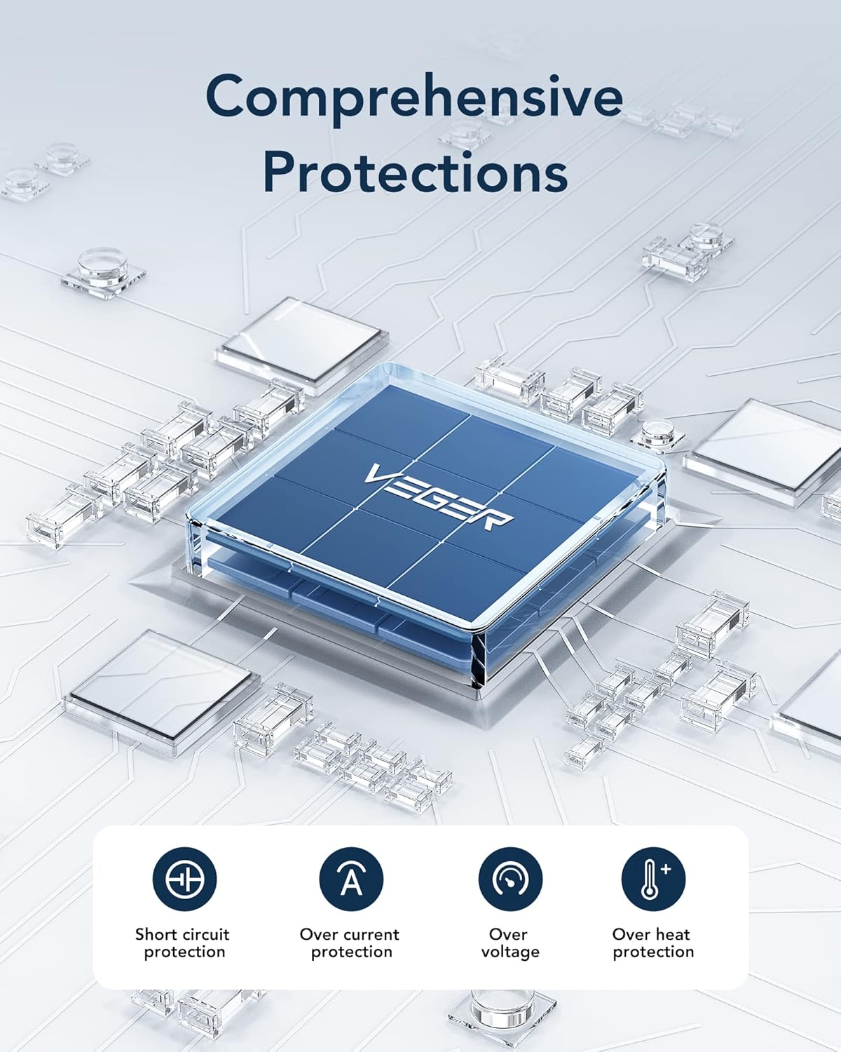 An Intelligent chip built-in provides power short circuit protection, over current protection, over-voltage, and over heat protection to ensure safe charging.