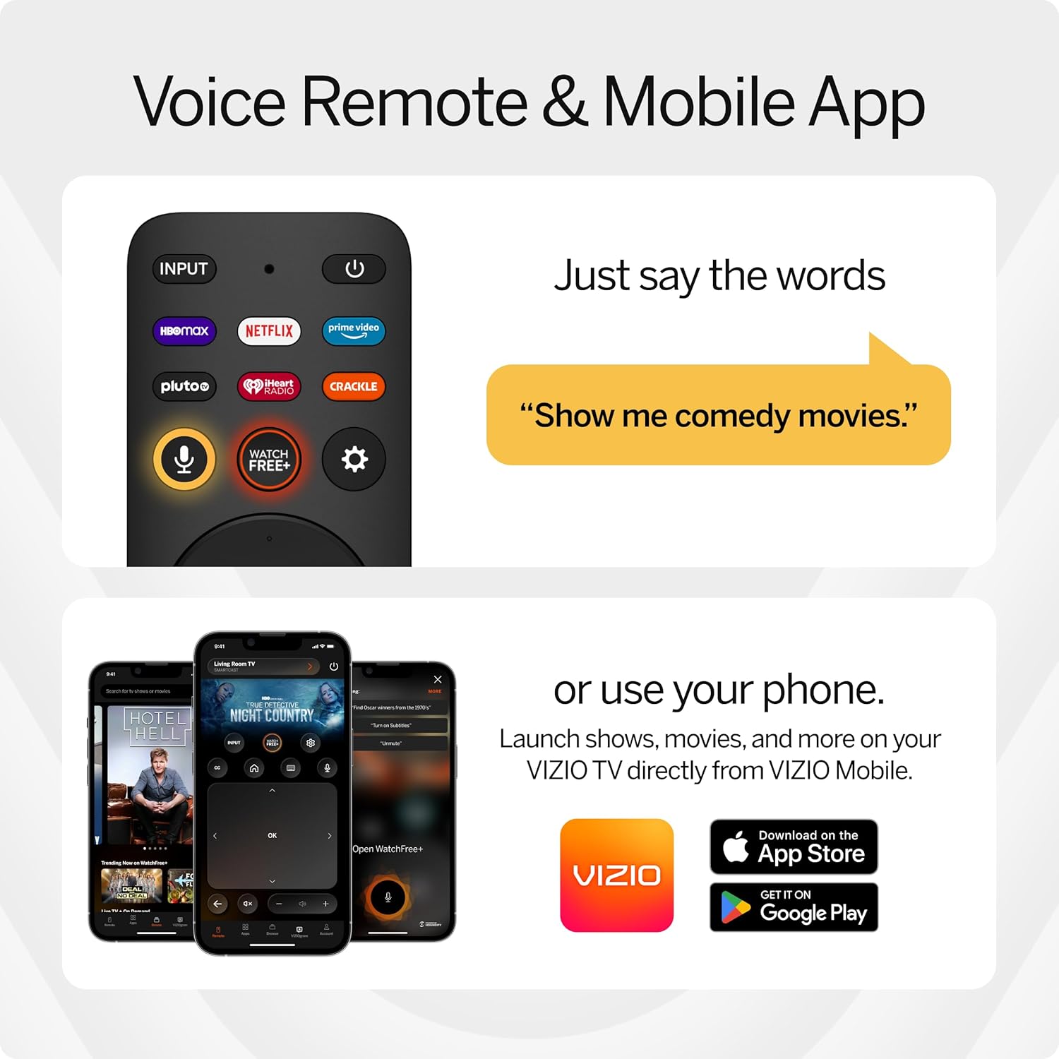 Built-in VIZIO OS lets you instantly access all your favorite apps and more. Enjoy hundreds of free channels and thousands of free On Demand titles with the built-in WatchFree+ app