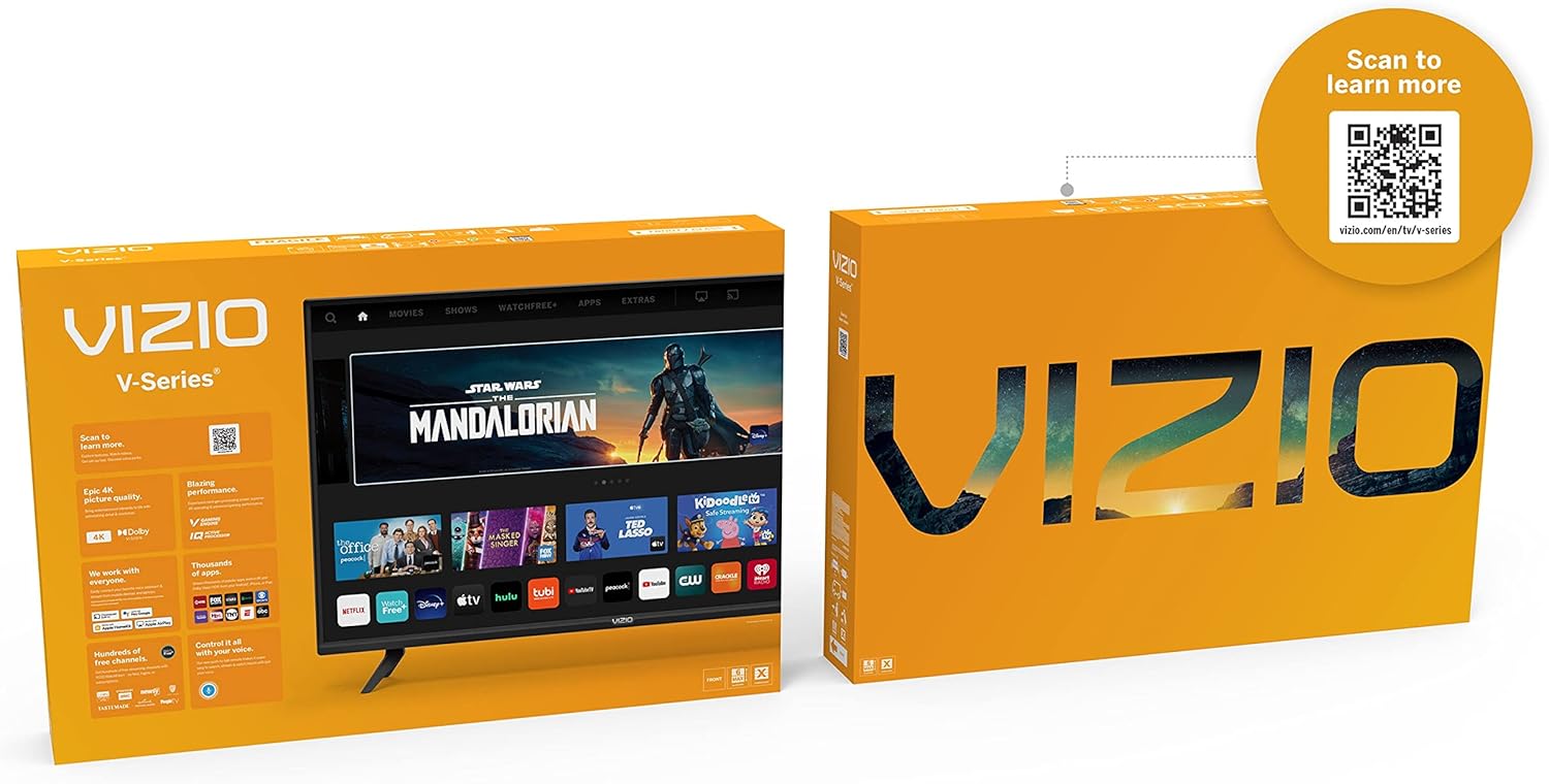 Escape into awesome entertainment with the VIZIO V-Series 4K UHD Smart TV. With epic 4K UHD picture quality, Dolby Vision and HDR10, a full array backlight, and active pixel tuning, V-Series provides crystal-clear and sharp picture quality. The next-gen speed and power of the VIZIO IQ Active processor brings astonishing detail and vibrancy to your viewing experience. Take your gaming to a whole new level with the V-Gaming engine which enables sub 10ms input lag, 4K 48-60 fps Variable Refresh Rate, Auto Game Mode, and a newly added gaming menu. Stream it all with the award-winning SmartCast platform loaded with the best selection of built-in apps including WatchFree+ that lets you enjoy free access to live TV and hundreds of free channels right out of the box. SmartCast also works with Apple AirPlay 2 and Chromecast built-in, offering unparalleled entertainment in a size that fits your lifestyle. V-series is everything you need and more in a Smart TV delivering a standout experience at an unmatched price. 1 month promotional period of discovery+ (ad-supported) available to those that purchase and activate a new VIZIO TV by 10/22/2022 and redeem promotion by 11/22/22.* *CANCEL BEFORE 1-MONTH PROMOTIONAL PERIOD ENDS TO AVOID AUTOMATIC MONTHLY FEES. New eligible subscribers only. Taxes apply. Terms apply.