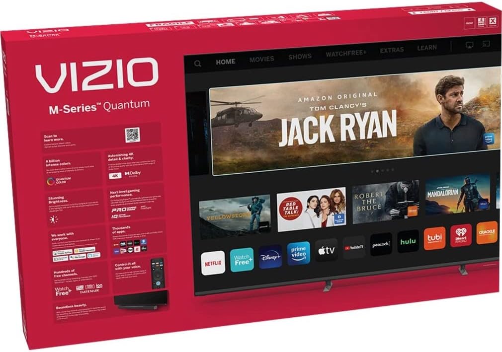 Immerse yourself in the infinite possibilities of 4K streaming in award-winning Quantum Color with the all-new VIZIO M-Series 4K HDR Smart TV. M-Series can display over a billion colors to create a true-to-life picture with an incredible color spectrum. Dolby Vision High Dynamic Range (HDR) combined with a full array backlight delivers stunning picture quality, transporting you into the story through richer contrast, brighter highlights, and eye-popping color. The lightning-fast VIZIO IQ Active processor delivers enhanced picture processing and a faster entertainment browsing experience, while the V-Gaming Engine with Auto Game Mode, Variable Refresh Rate with AMD FreeSync, ultra-low input lag, and newly added gaming menu take console gaming to a whole new level. Enjoy the award-winning SmartCast platform loaded with the best selection of built-in apps, an all-new Voice Remote, Bluetooth headphone capability, and Apple AirPlay 2 and Chromecast built-in. M-Series breaks new ground in Smart TV entertainment.